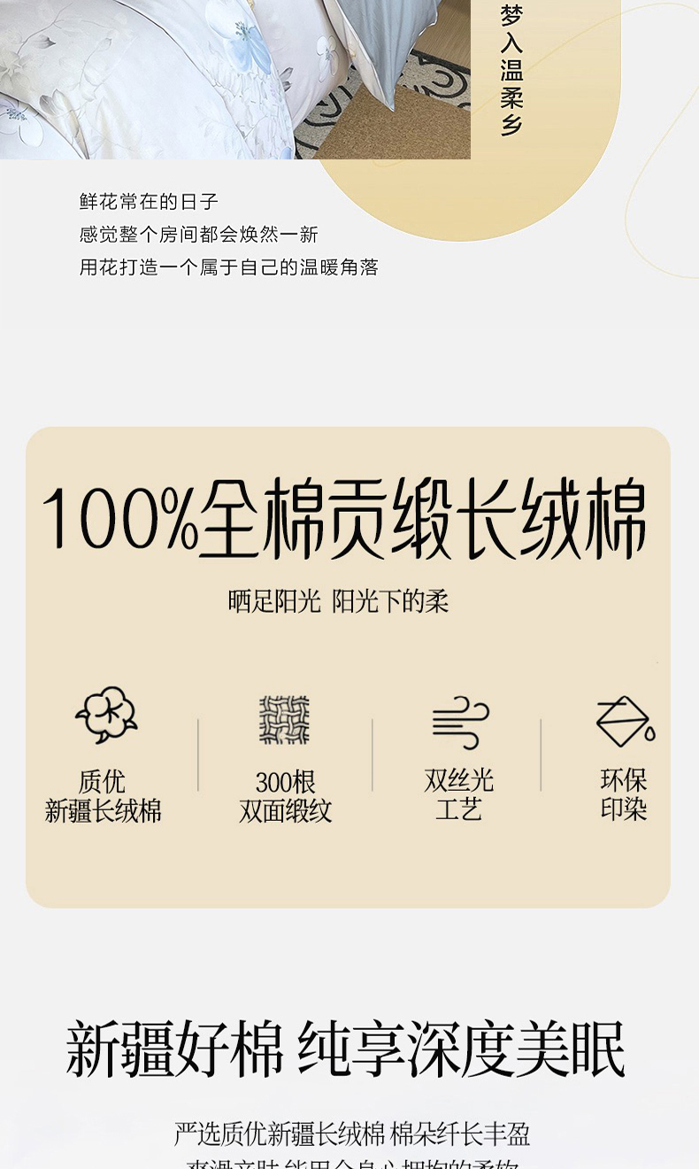 HOdoHome/红豆家纺全棉贡缎长绒棉床品四件套200*230cm