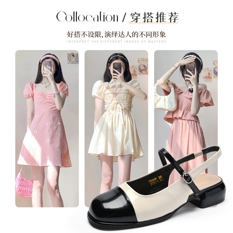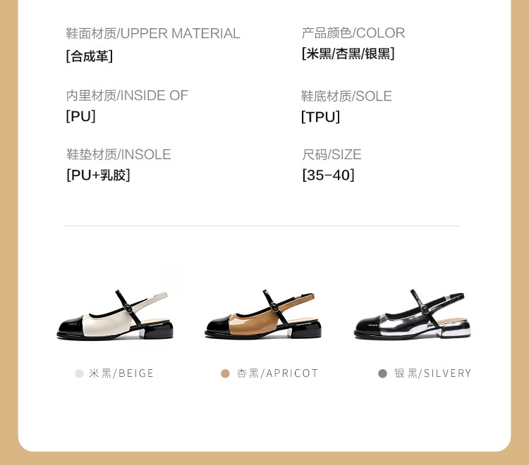 商品名称:【复古撞色】气质小香风后空凉鞋平底凉鞋女夏季包头凉鞋女士凉鞋 281664