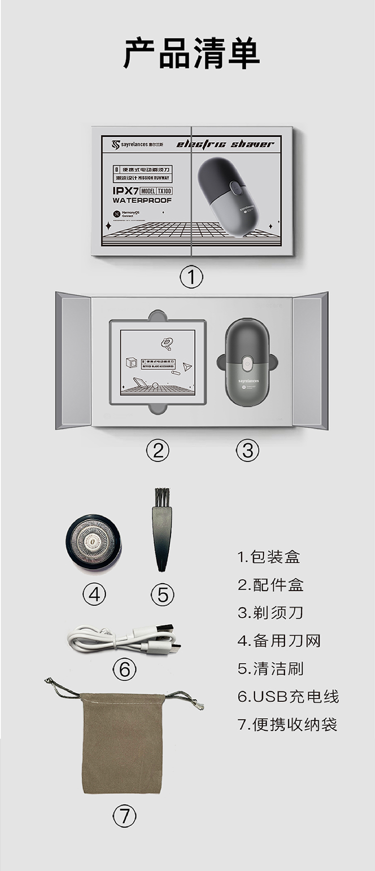 sayrelances/赛尔兰斯胶囊电动剃须刀TX-100
