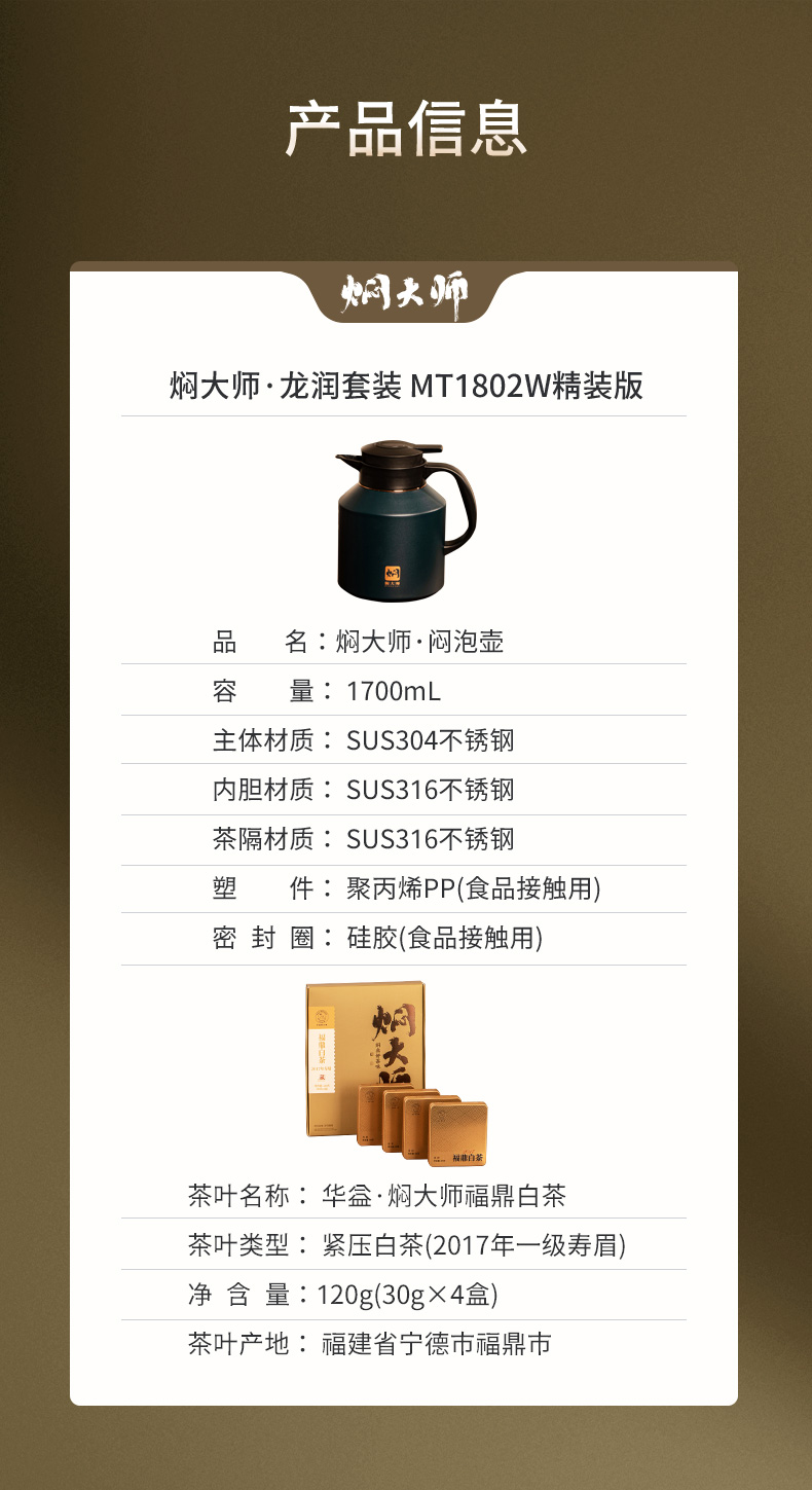 商品名称:焖大师经典甄选系列龙润茶壶套装MT1802W