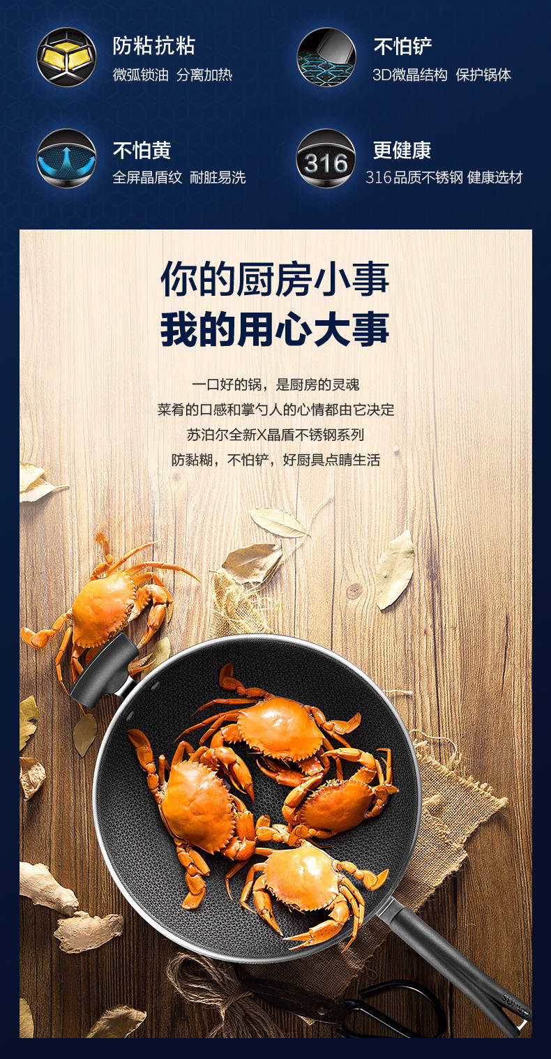 商品名称:SUPOR/苏泊尔32cmX晶盾不锈钢炒锅CC32JA2