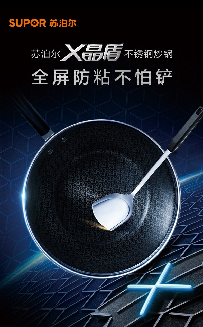 SUPOR/苏泊尔32cmX晶盾不锈钢炒锅CC32JA2