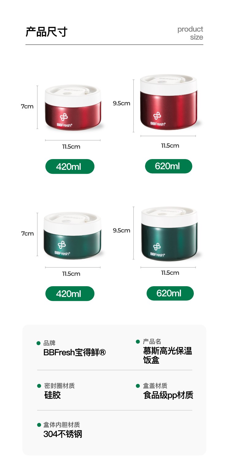 商品名称:BBFRESH/宝得鲜高光慕斯保温盒