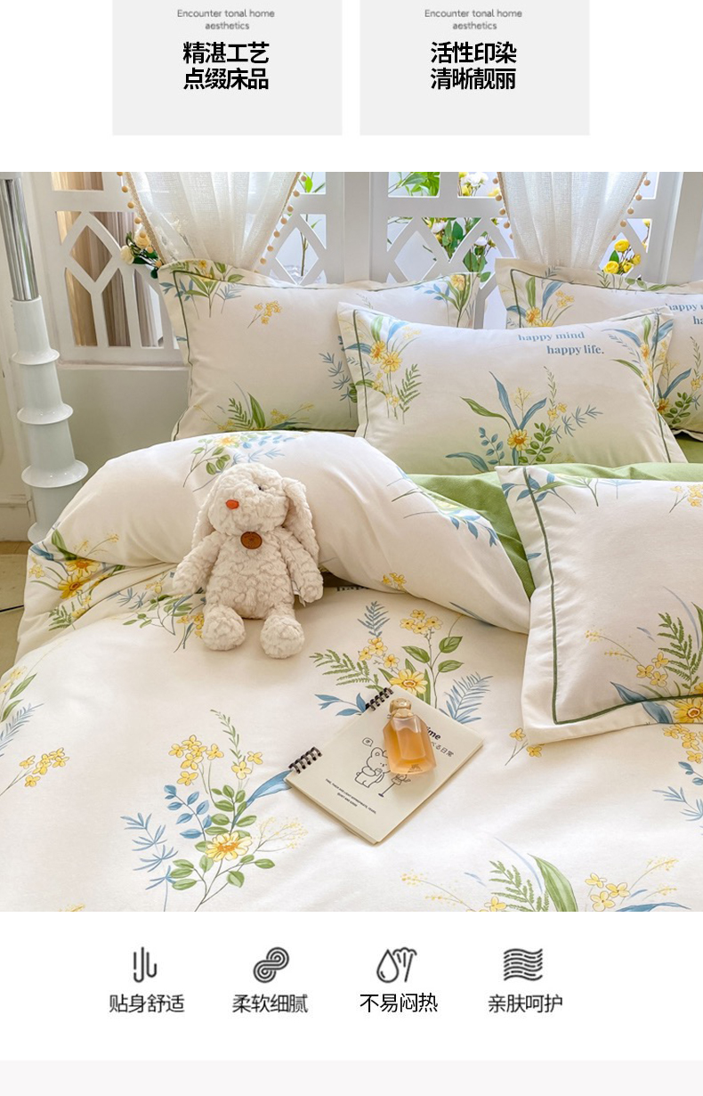 HOdoHome/红豆家纺花妍全棉印花床品四件套200*230cm