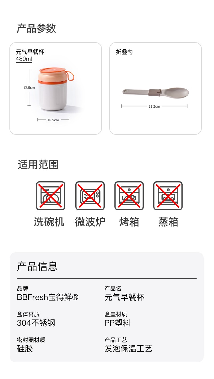 商品名称:BBFRESH/宝得鲜480毫升304不锈钢元气早餐杯