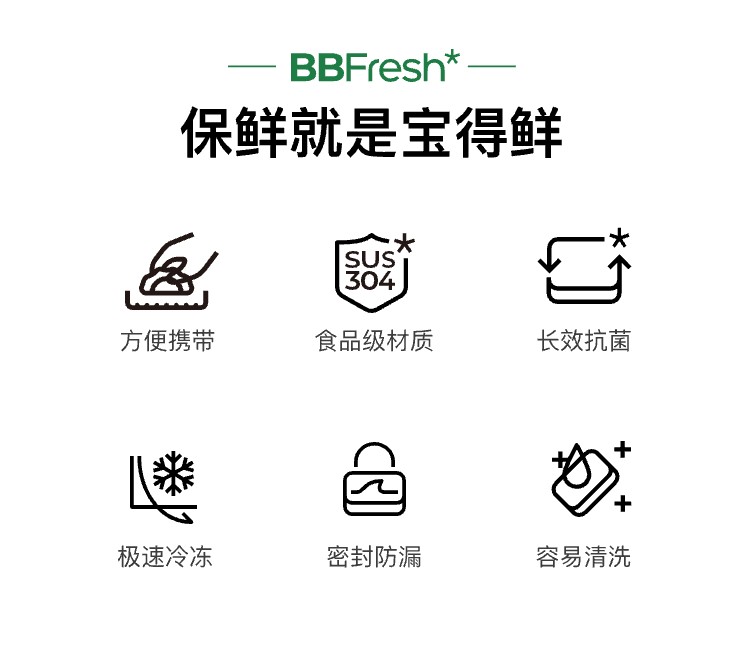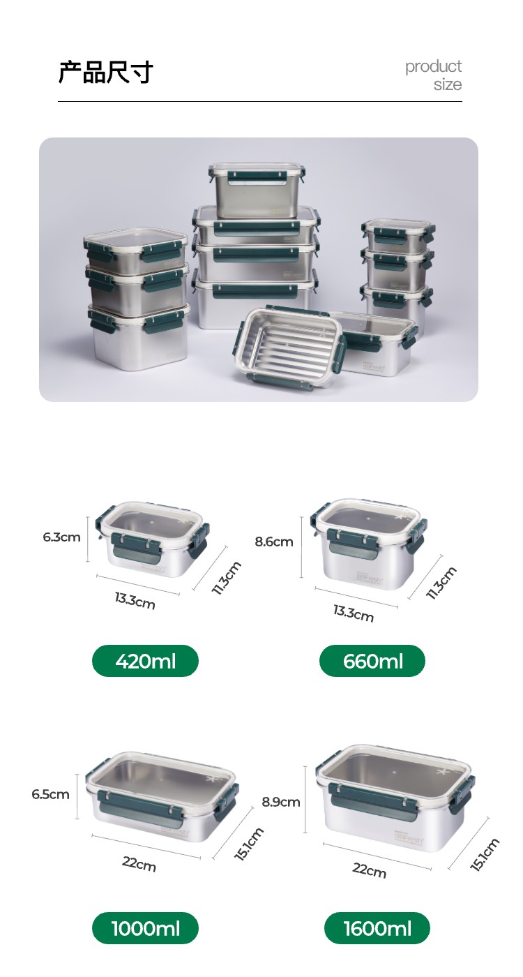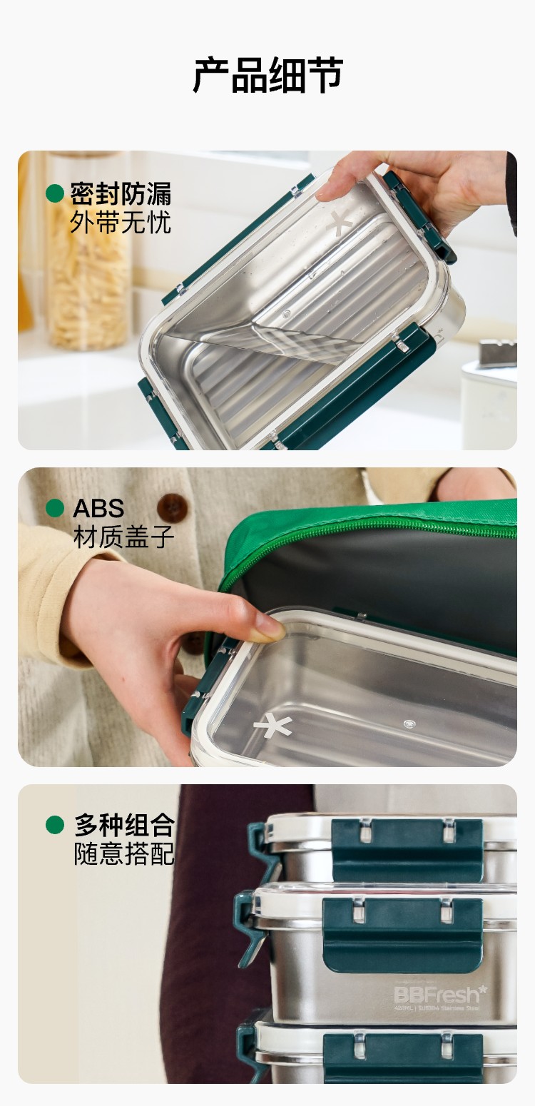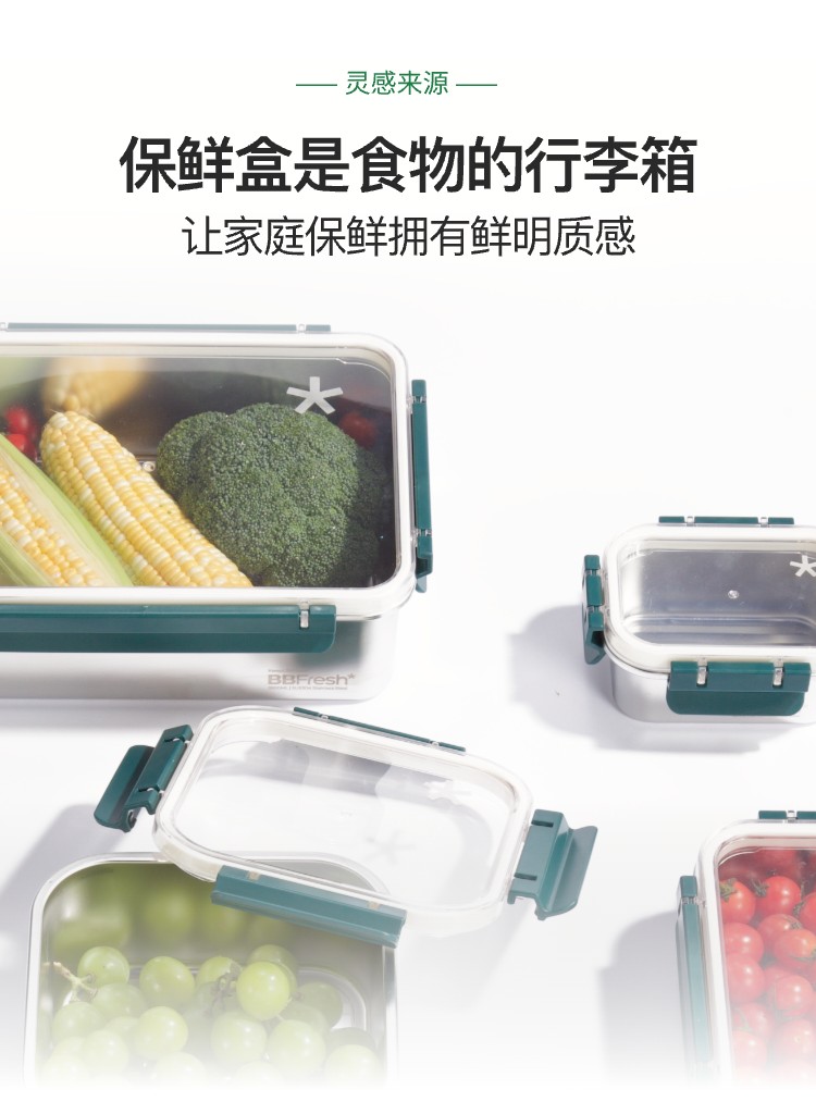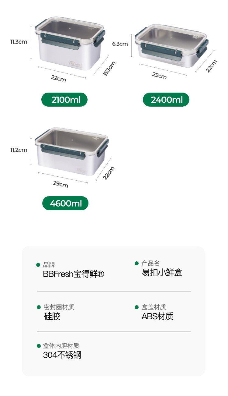 商品名称:BBFRESH/宝得鲜304不锈钢长方形易扣小鲜盒