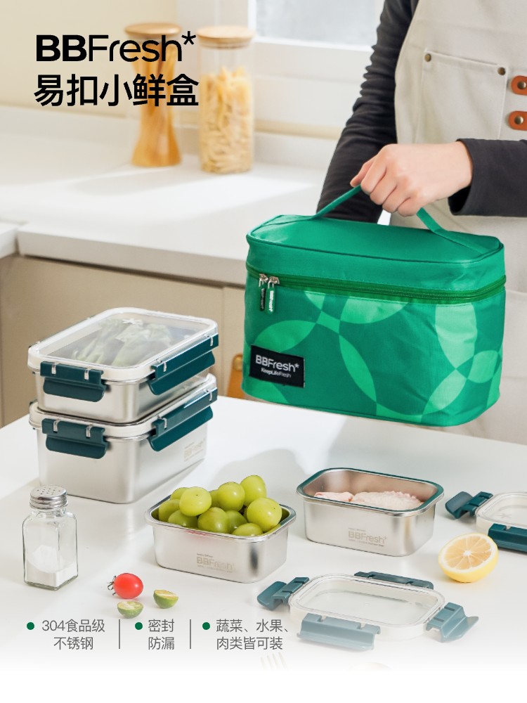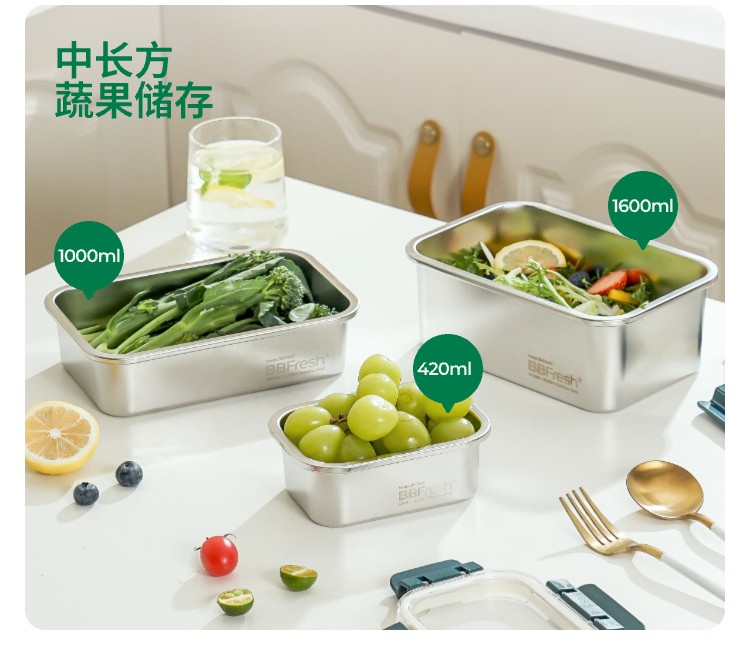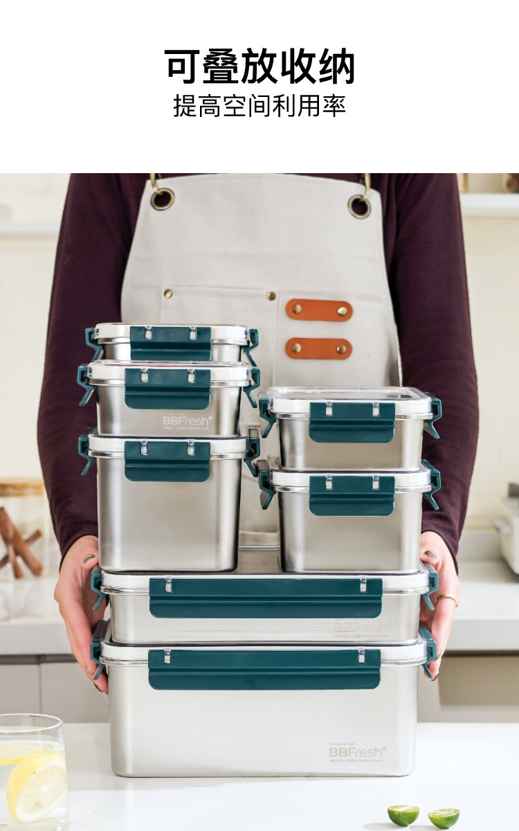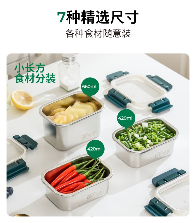 BBFRESH/宝得鲜304不锈钢长方形易扣小鲜盒