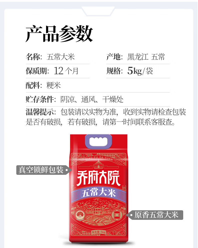 商品名称:乔府大院原香五常大米 5kg