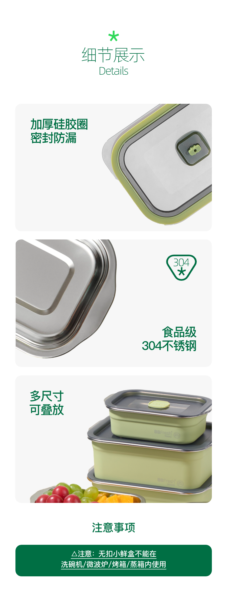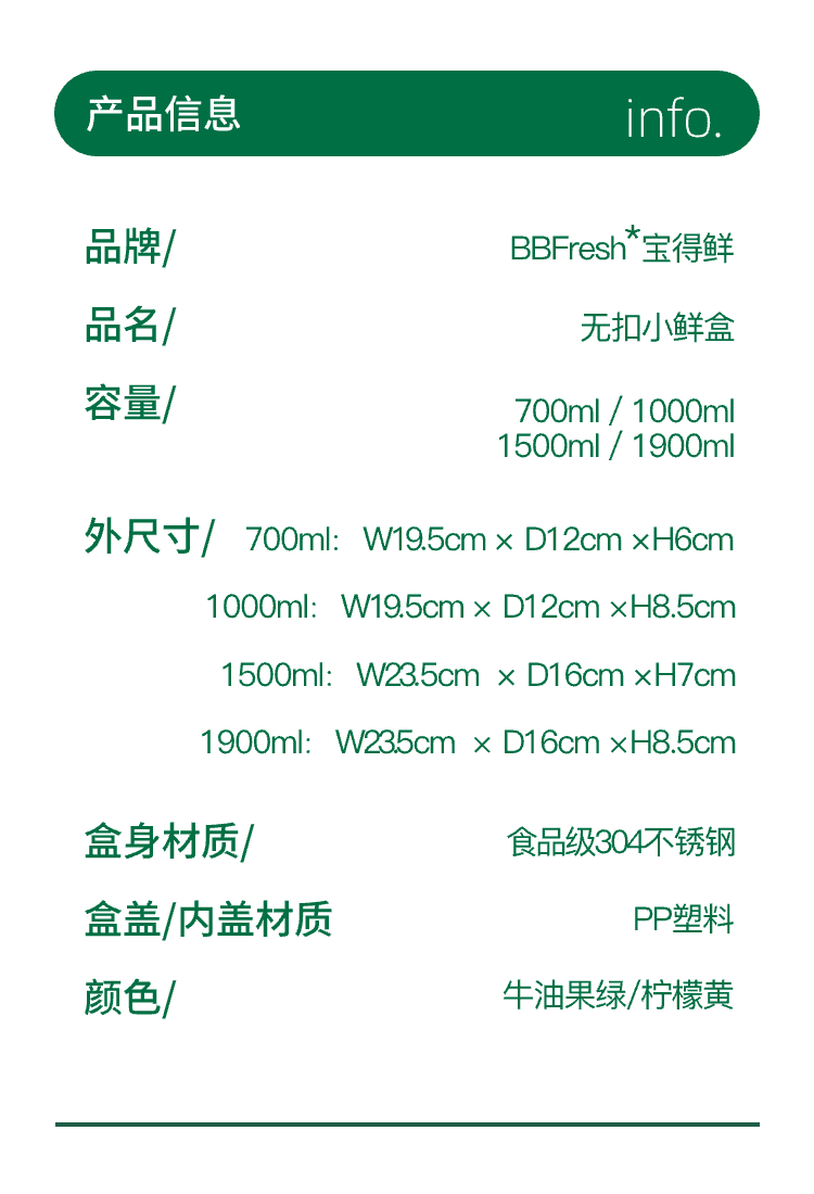 商品名称:BBFRESH/宝得鲜304不锈钢无扣小鲜盒