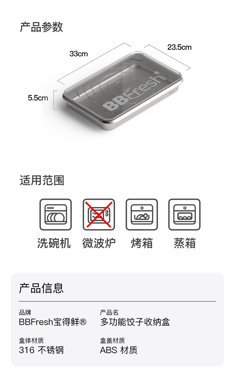 商品名称:BBFRESH/宝得鲜316不锈钢多功能饺子盒