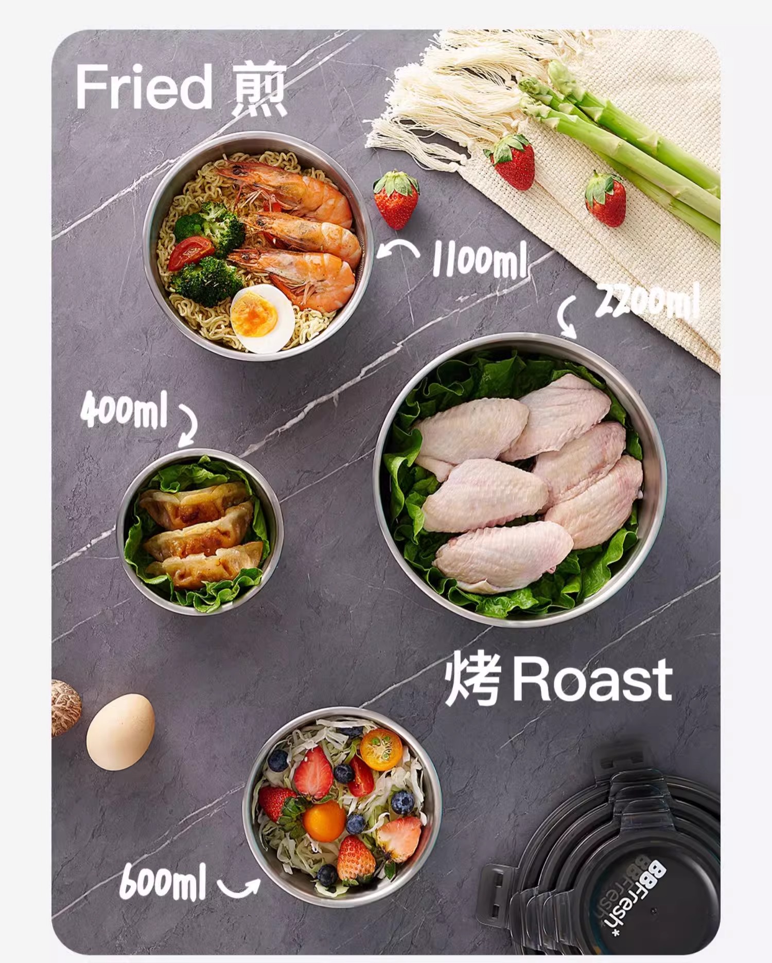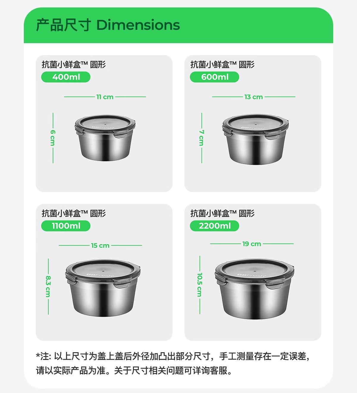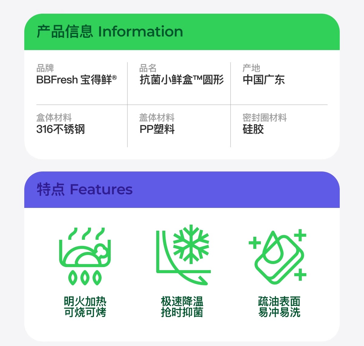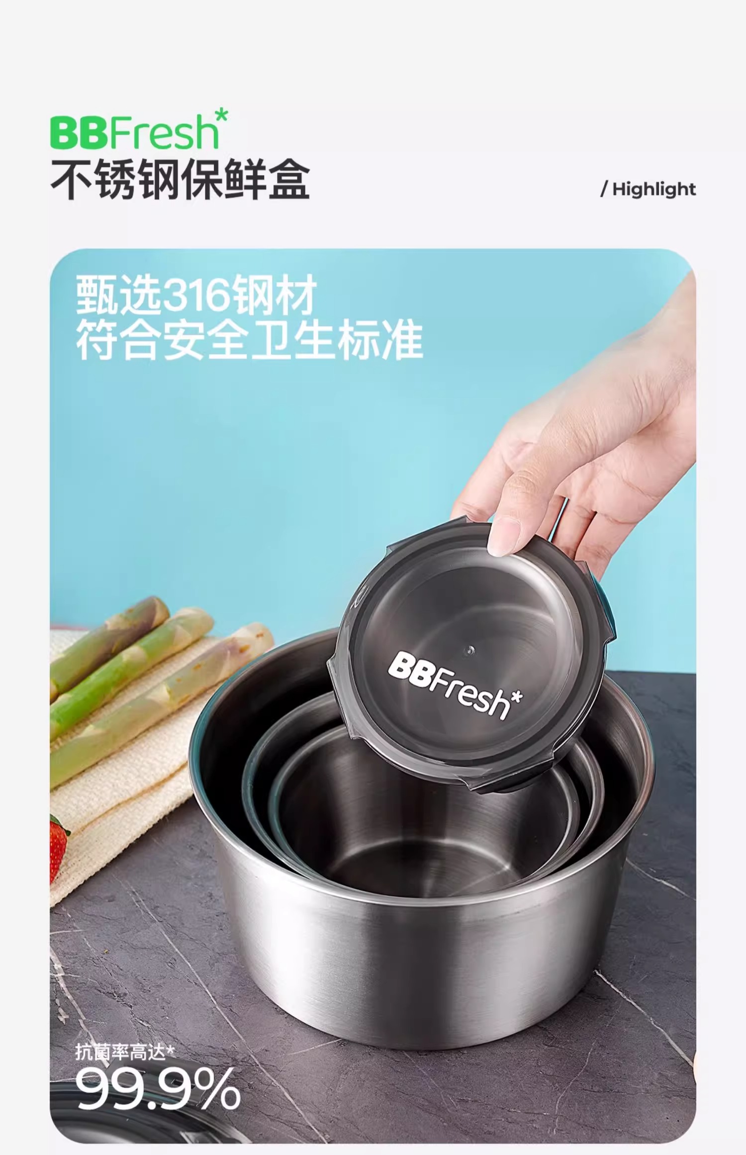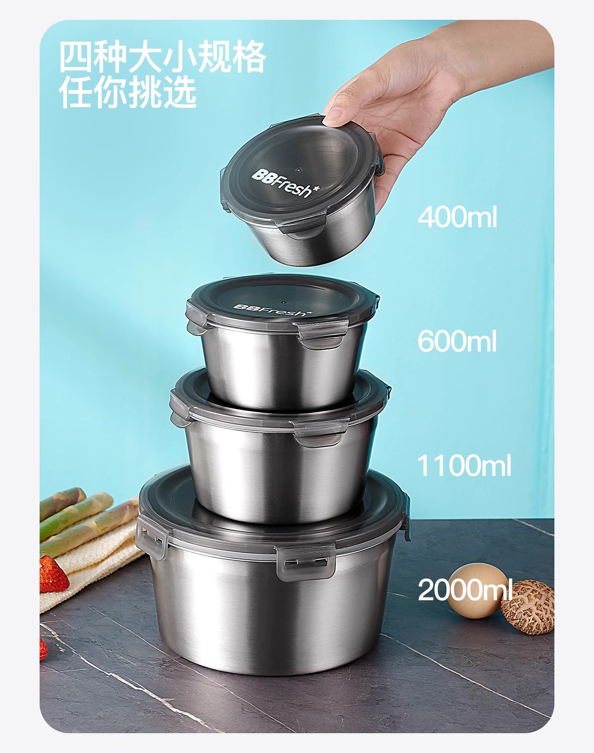 商品名称:BBFRESH/宝得鲜316不锈钢圆形小鲜盒4件套