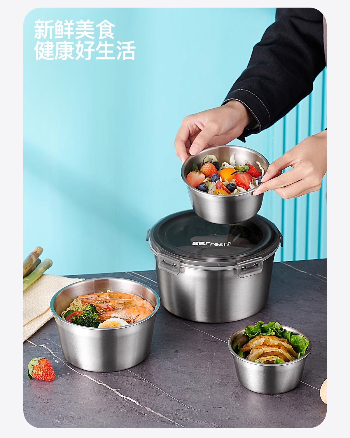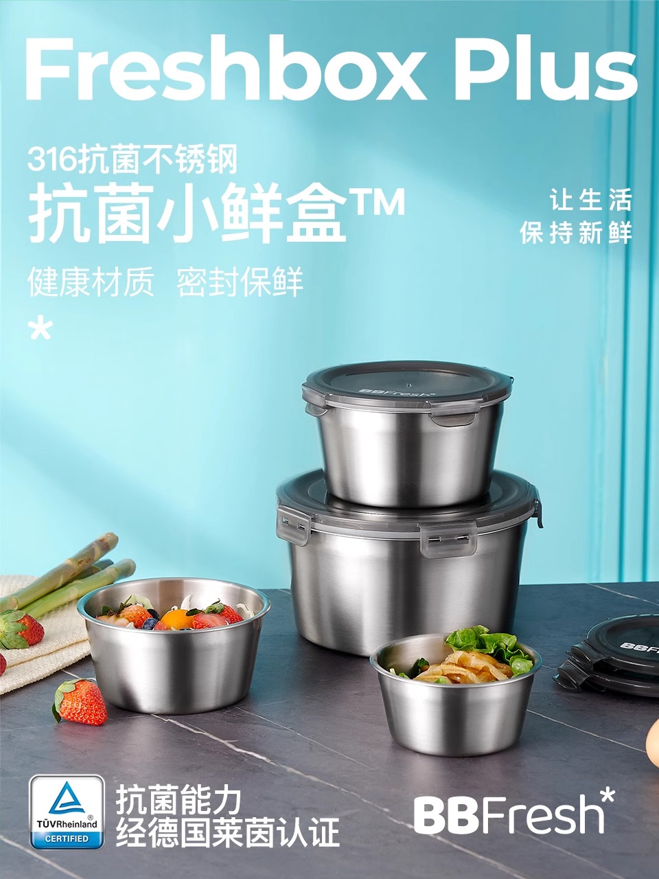 BBFRESH/宝得鲜316不锈钢圆形小鲜盒4件套
