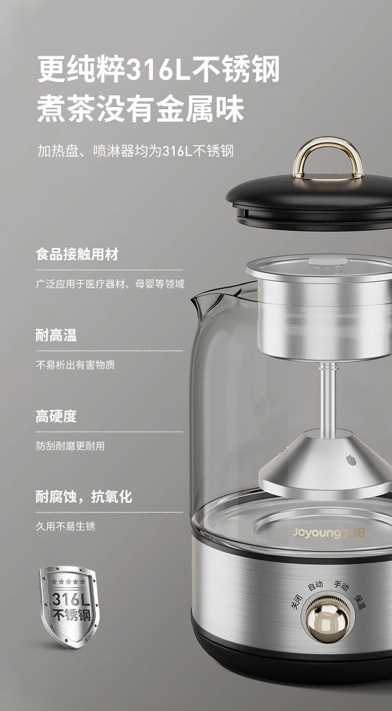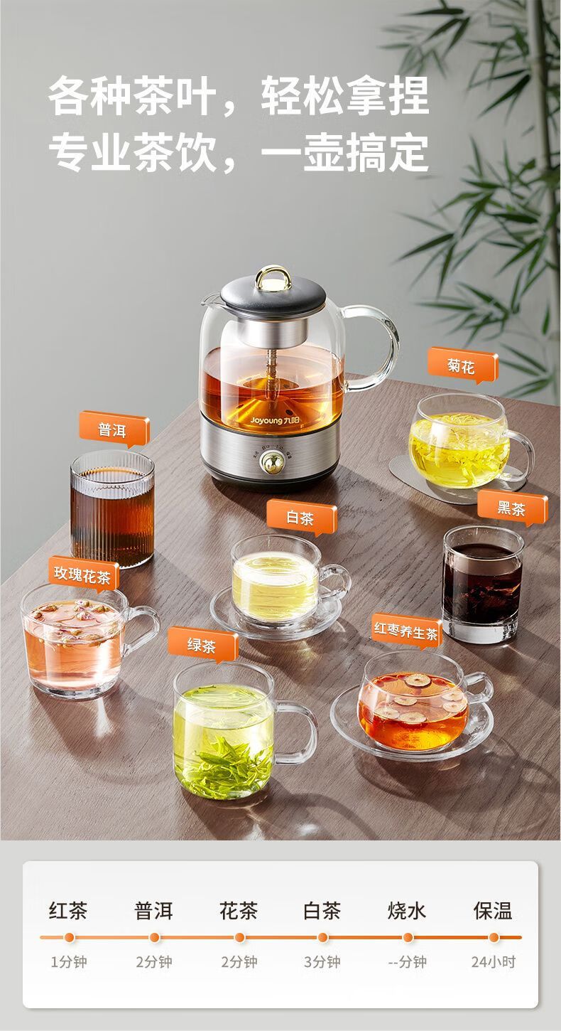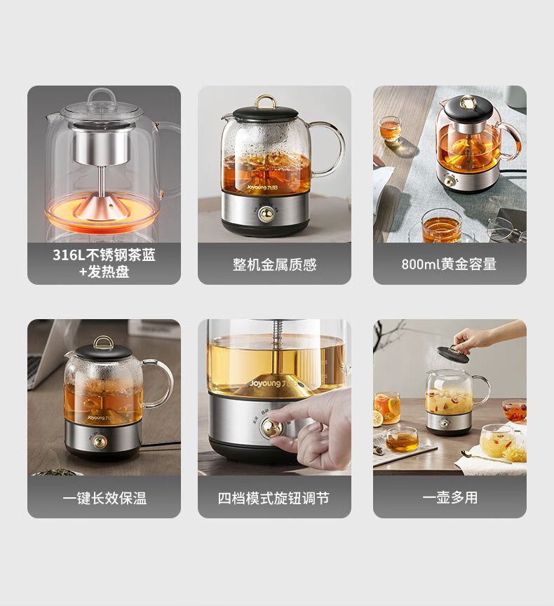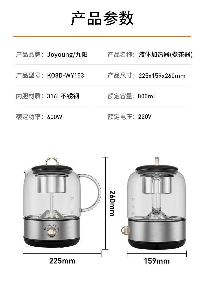 商品名称:九阳 煮茶器K08D-WY153 养生壶办公室316L全自动家用多功能煮茶壶0.8L小型电热水壶