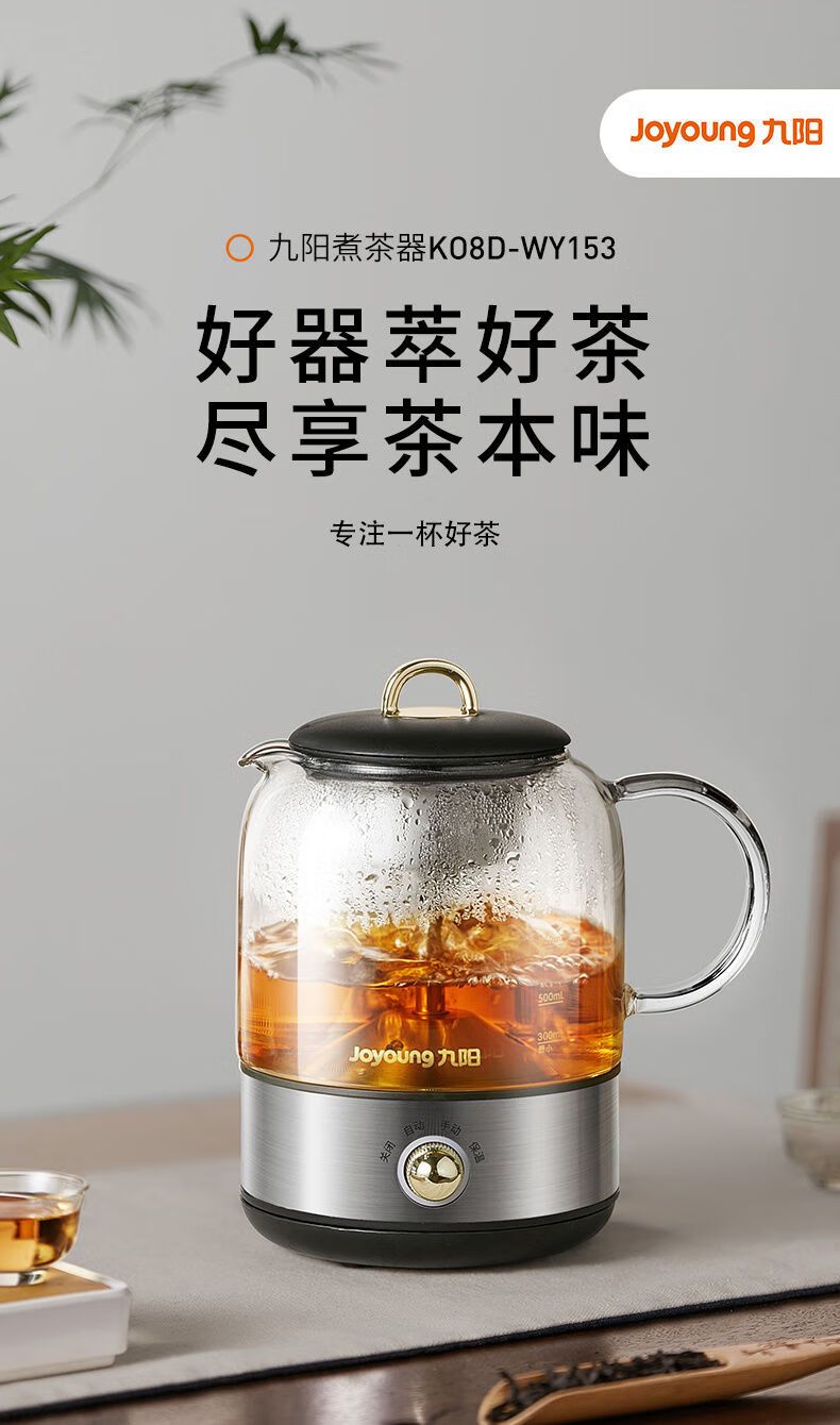 九阳 煮茶器K08D-WY153 养生壶办公室316L全自动家用多功能煮茶壶0.8L小型电热水壶