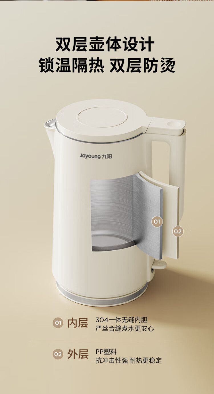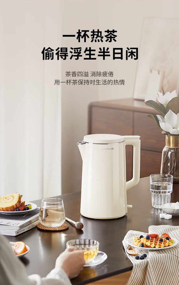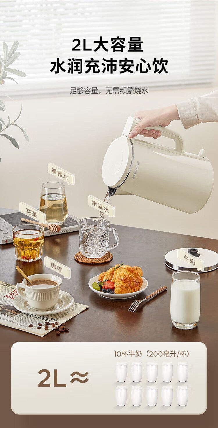九阳 开水煲K20FD-W5185 家用2L大容量烧水壶 电水壶 304不锈钢开水煲