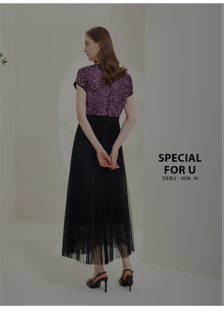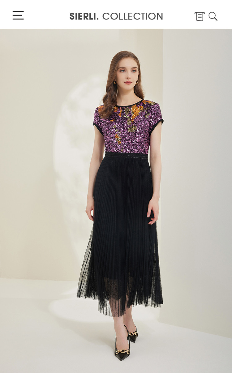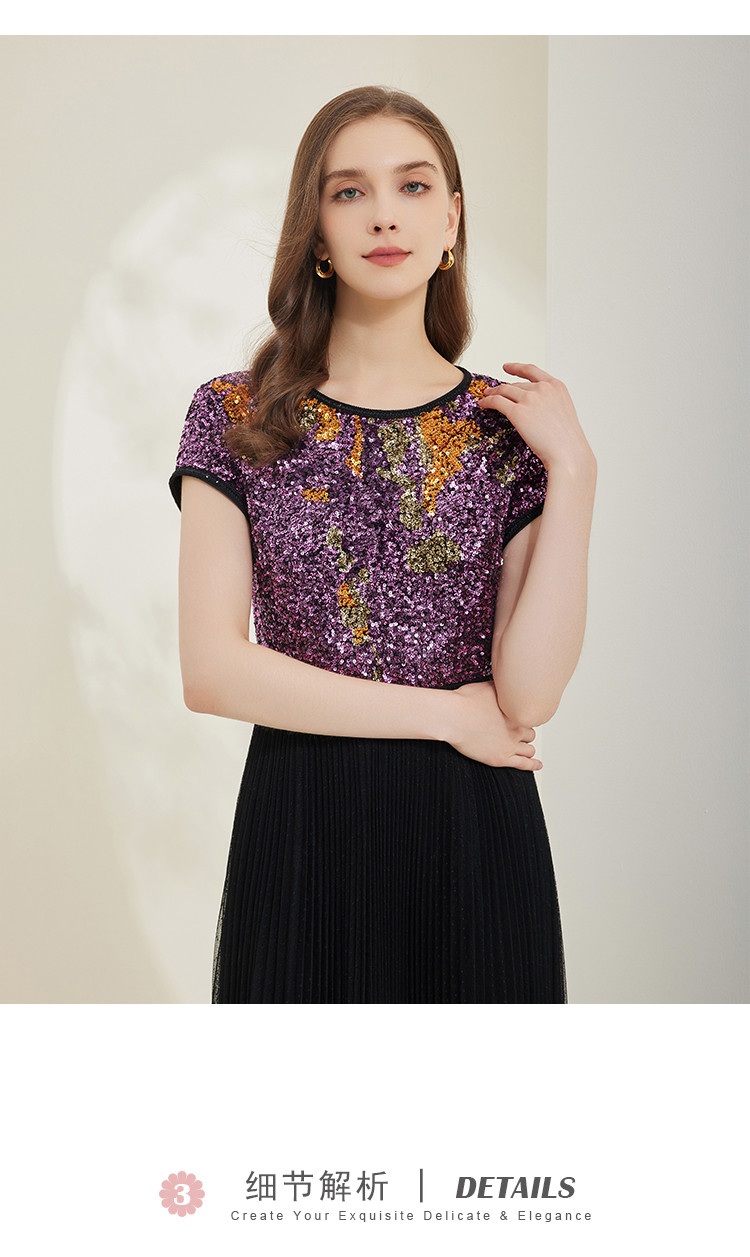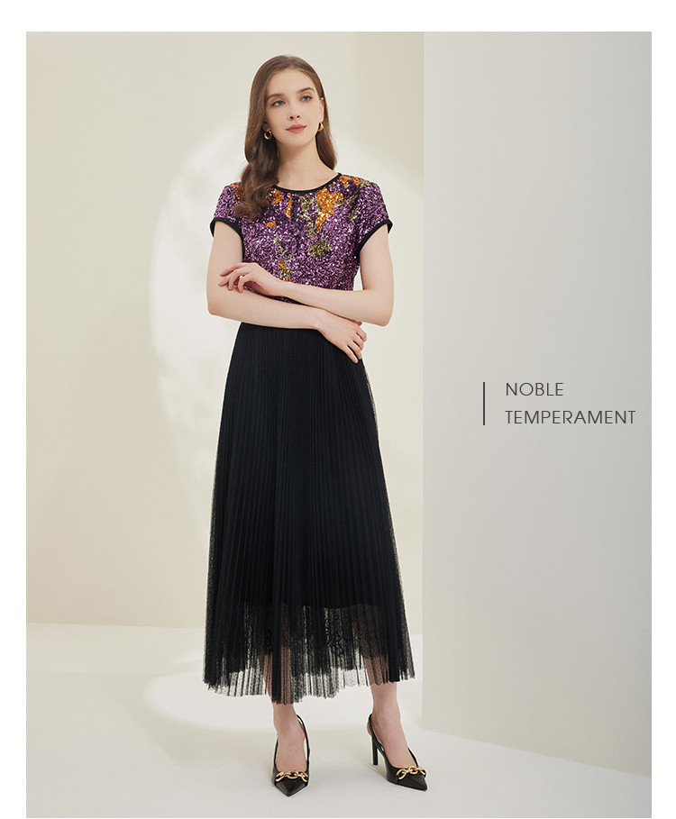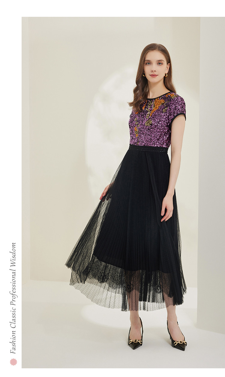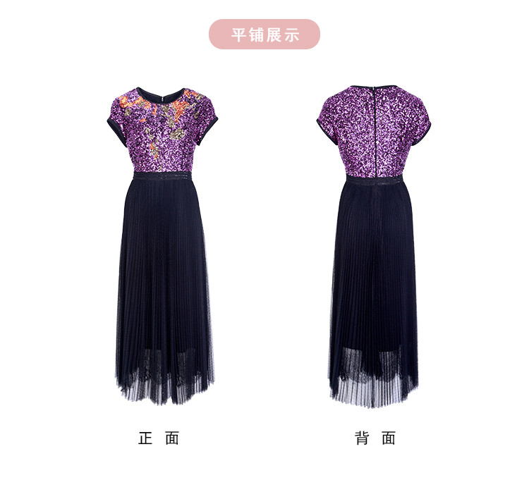 商品名称:[压褶绣花]秋季时尚圆领收腰短袖长款连衣裙 767199