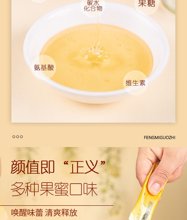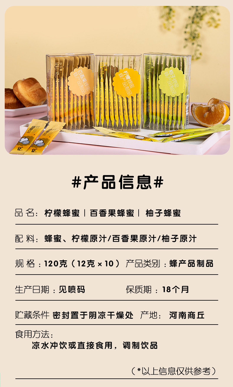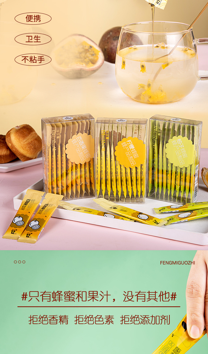 商品名称:养蜂婆婆条装鲜果汁蜂蜜混合口味120g*6盒