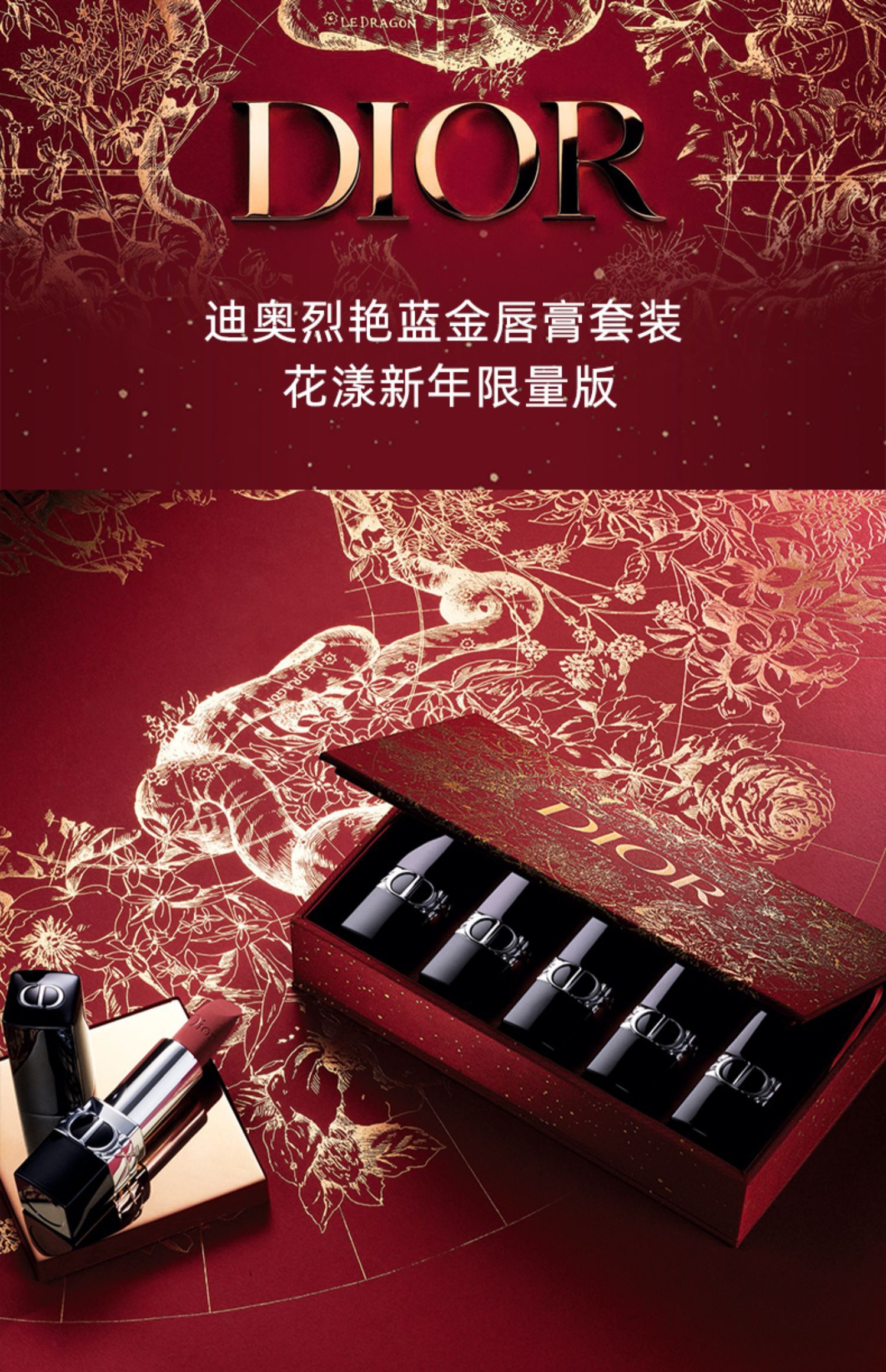 Dior/迪奥 烈艳蓝金唇膏 新色丝绒哑光节日新年限量礼物送女友 限定5支装礼盒(礼盒+礼袋)