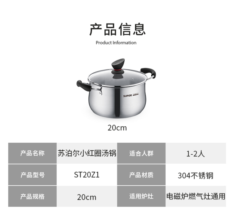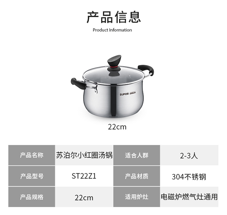 商品名称:SUPOR/苏泊尔精致系列小红圈不锈钢汤锅