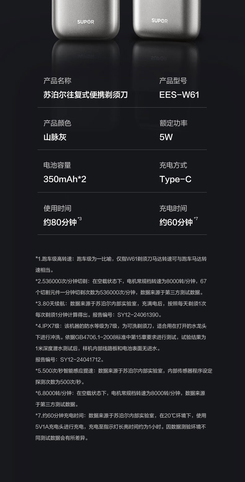 商品名称:SUPOR/苏泊尔往复式便携剃须刀EES-W61