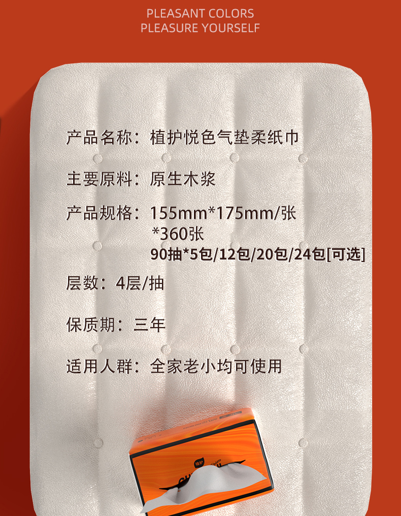 商品名称:植护植护悦色气垫柔纸巾4层90抽