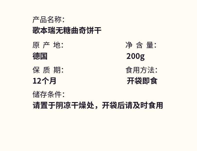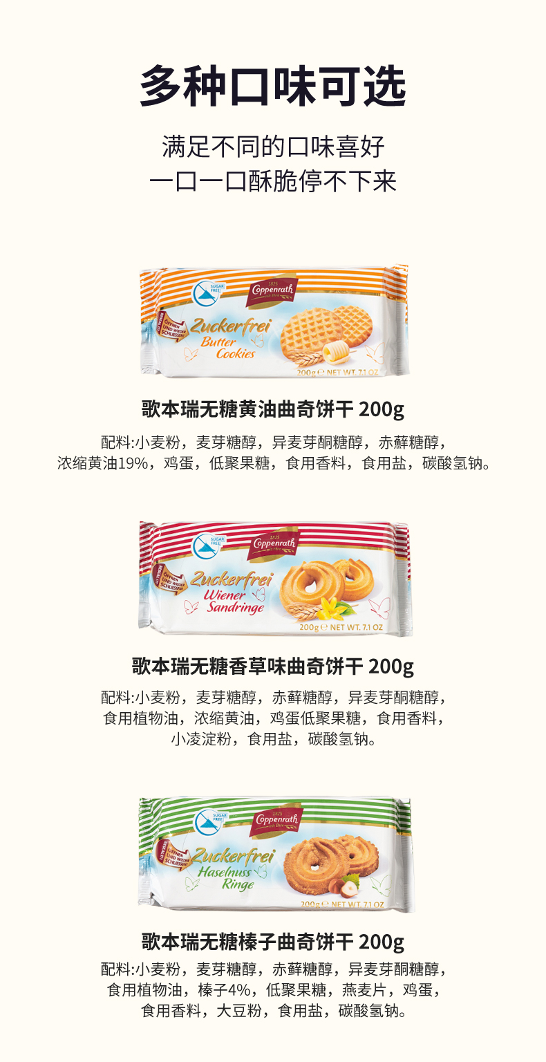 商品名称:歌本瑞德国进口无糖曲奇饼干混合口味200g*3盒