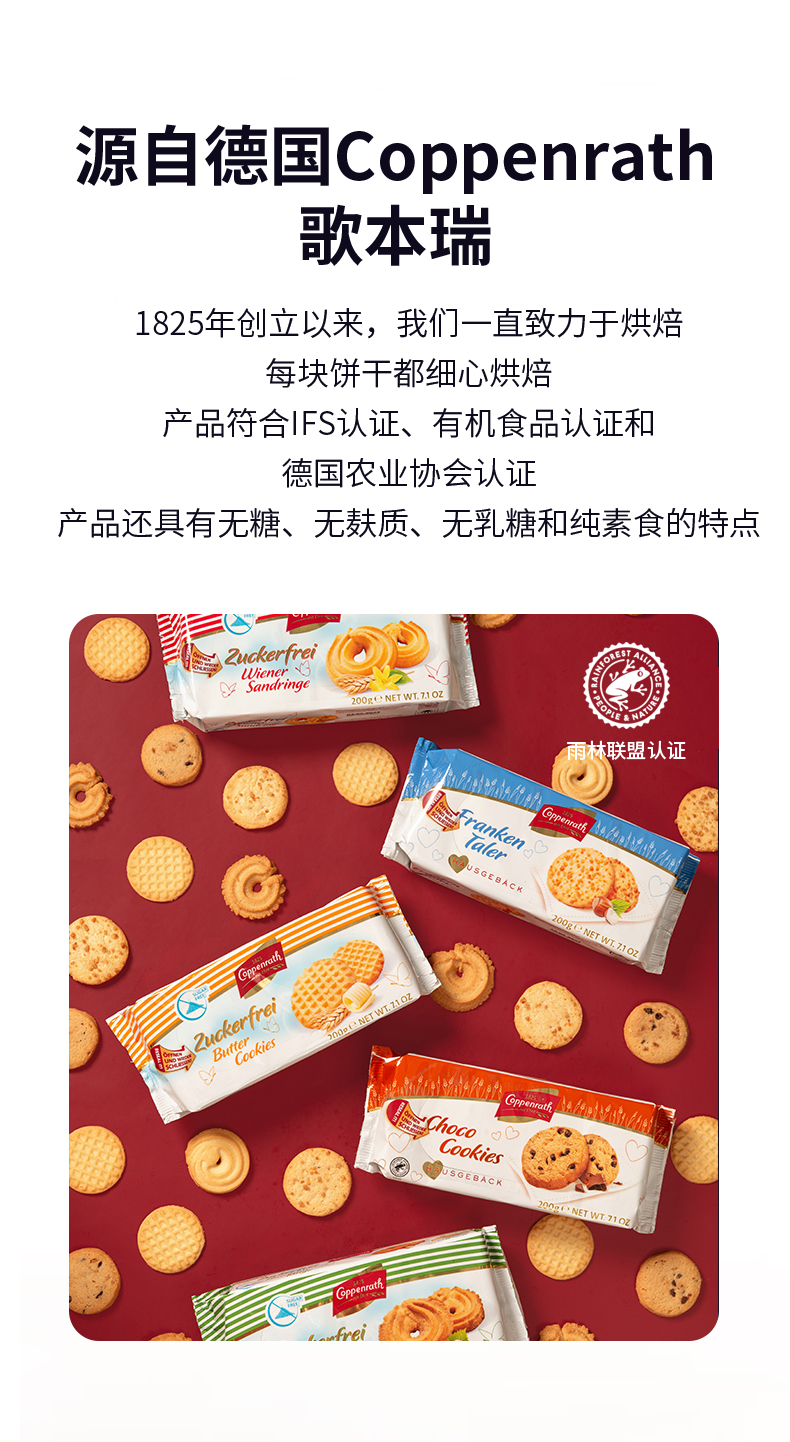 歌本瑞德国进口无糖曲奇饼干混合口味200g*3盒