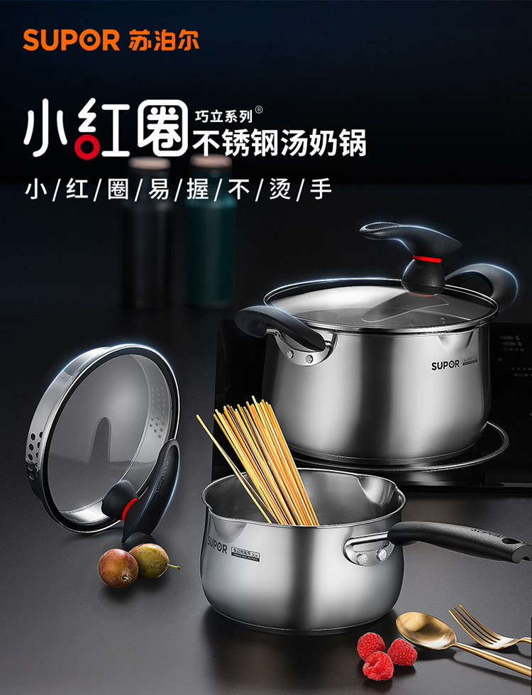 SUPOR/苏泊尔巧立系列小红圈不锈钢奶锅汤锅