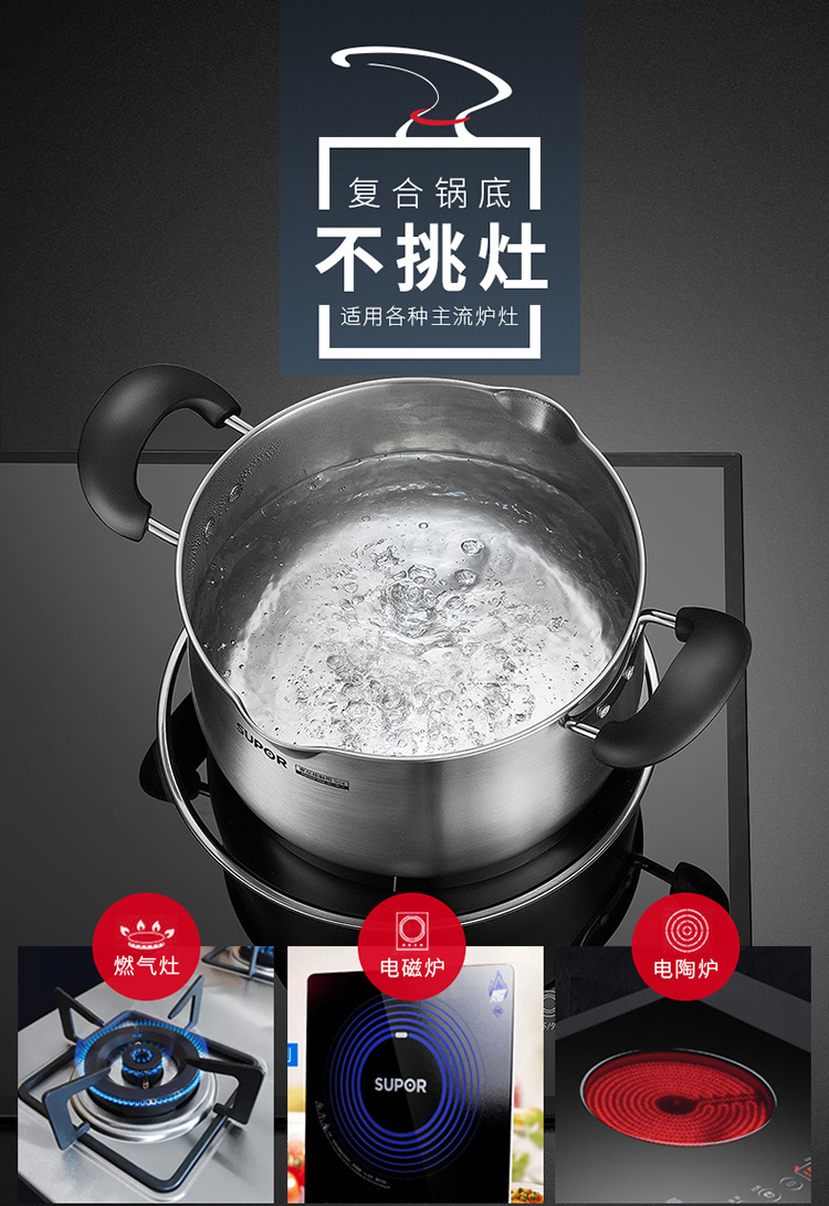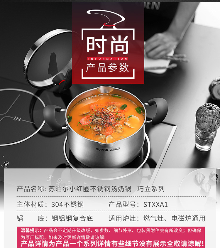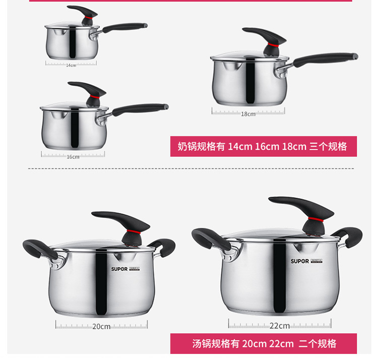 商品名称:SUPOR/苏泊尔巧立系列小红圈不锈钢奶锅汤锅