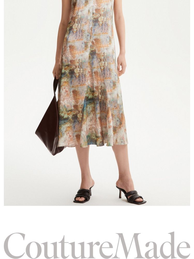 【时尚吊带裙】秋专柜款印花中长裙简约度假优雅连衣裙 150481