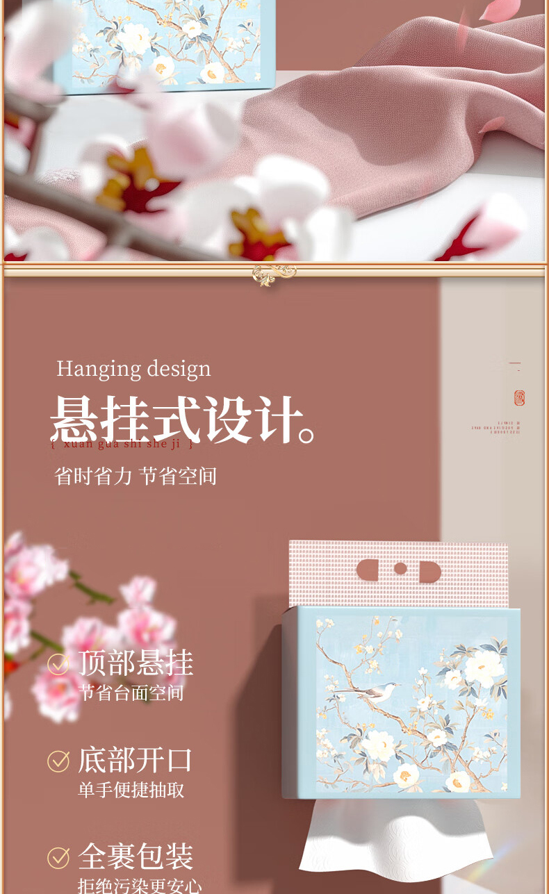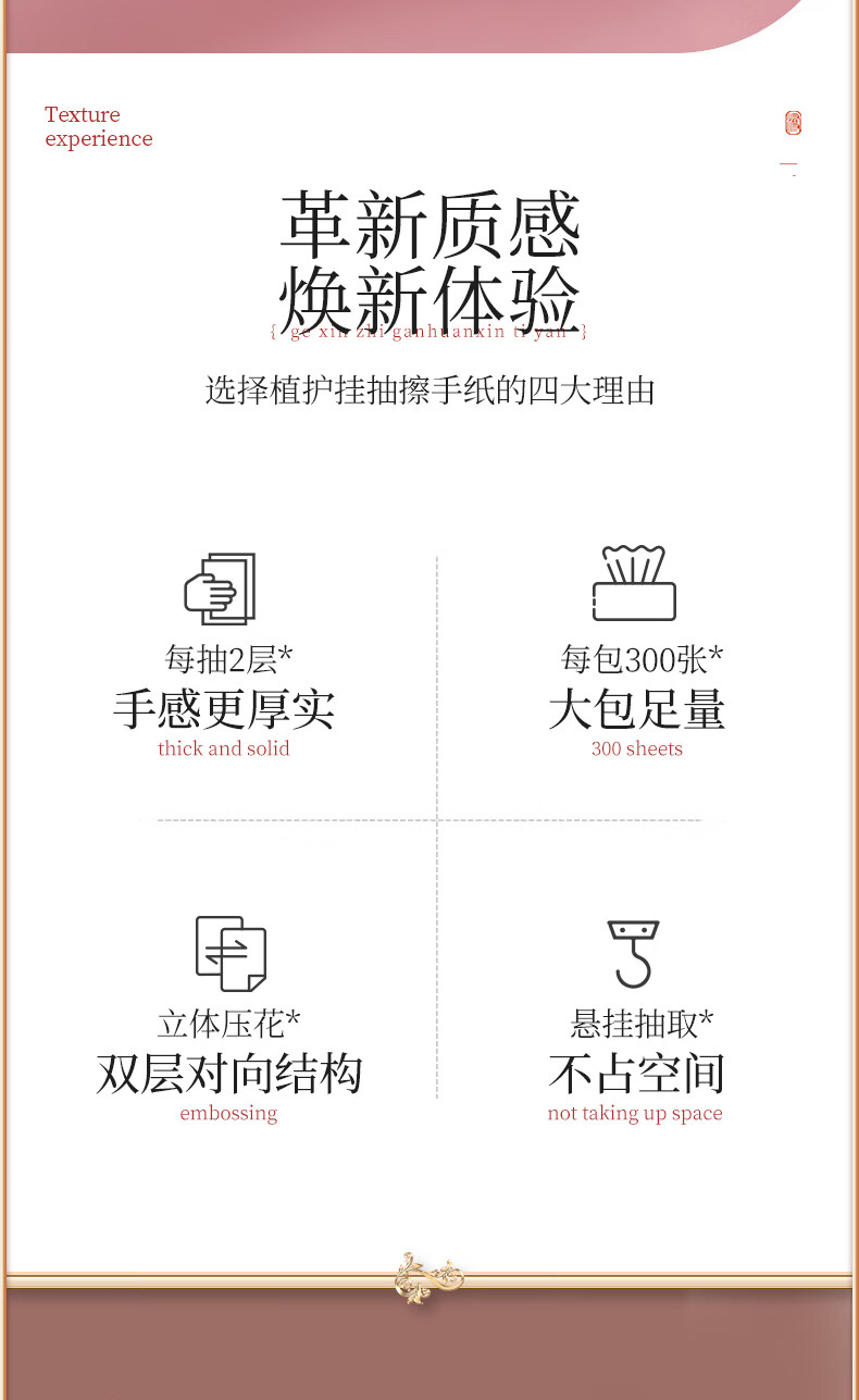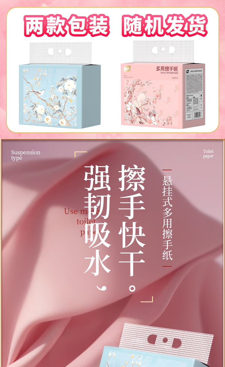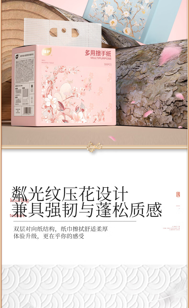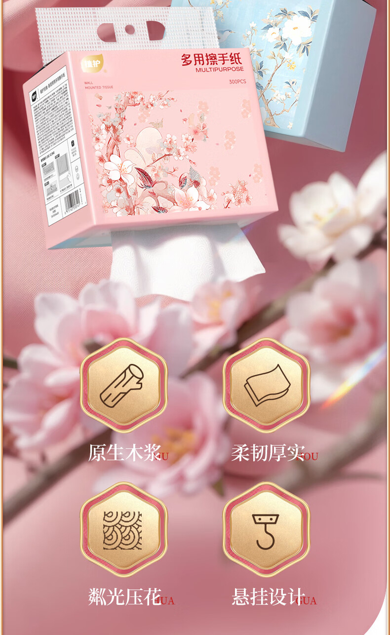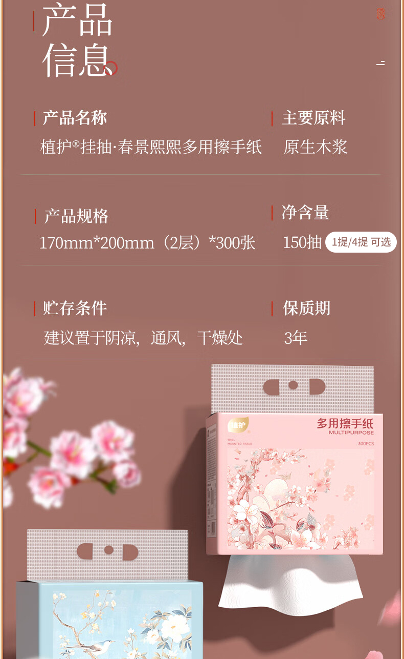 商品名称:植护挂抽春景熙熙多用擦手纸2层150抽