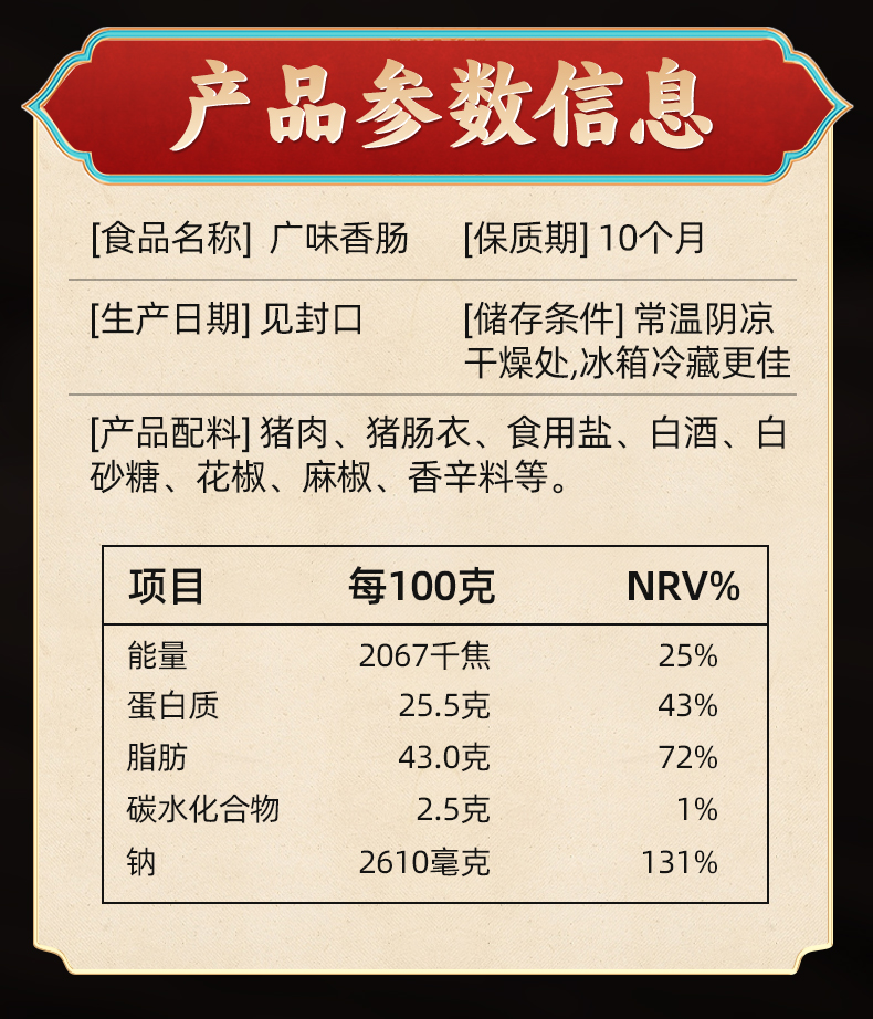 商品名称:三匠广味香肠500g