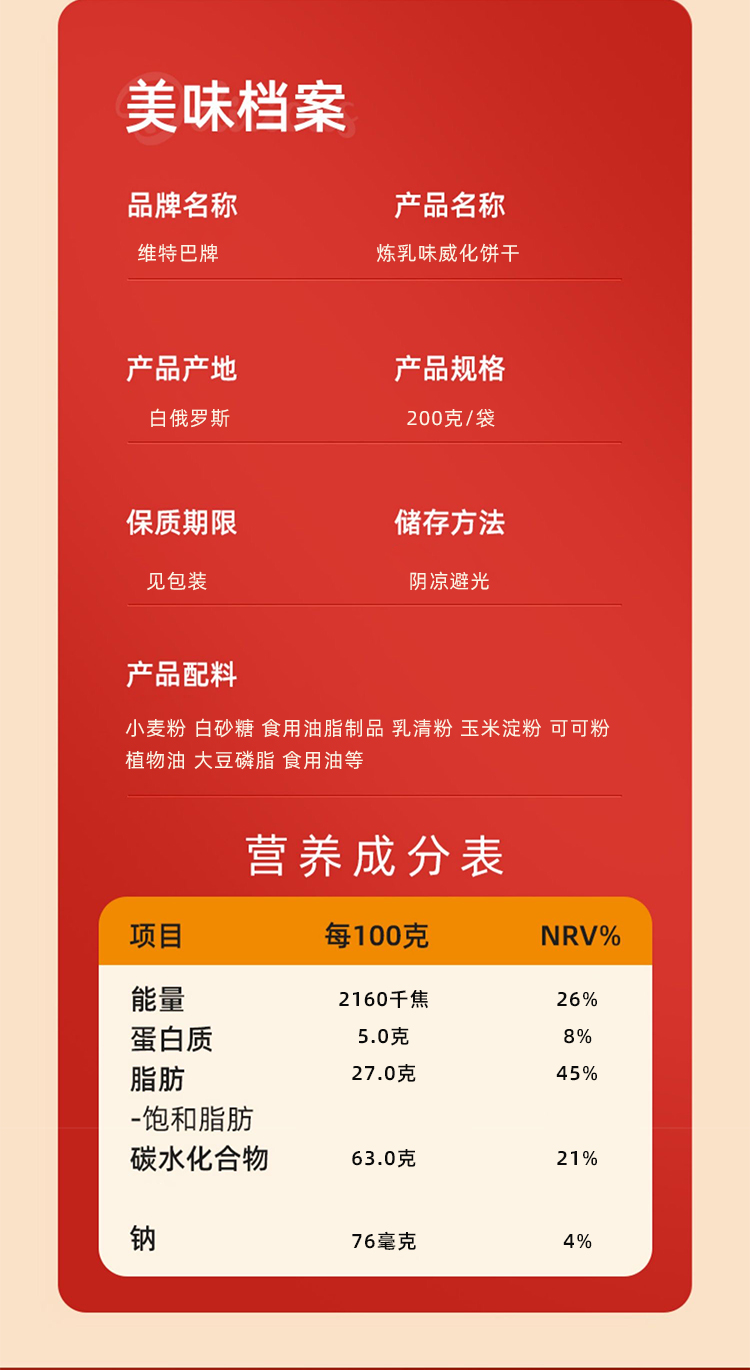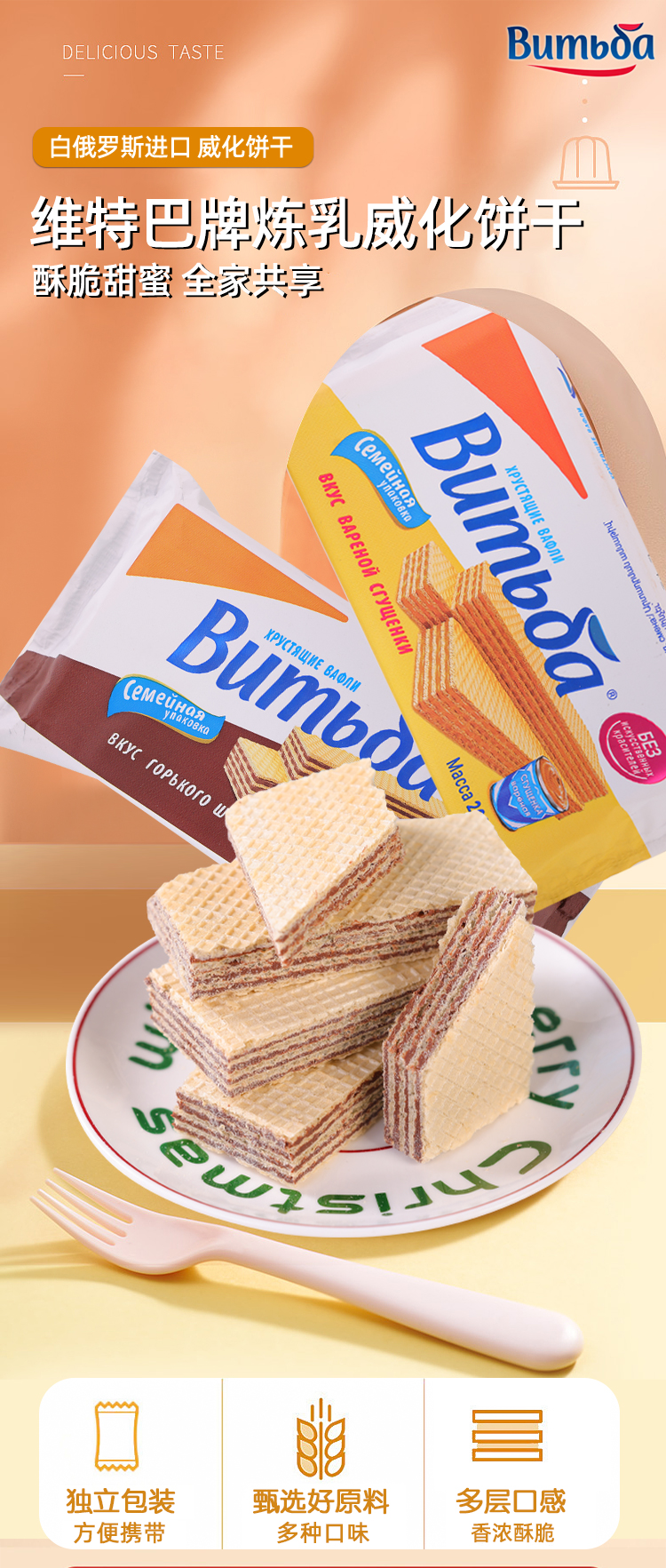 商品名称:维特巴牌白俄罗斯进口威化饼干混合口味200g*4袋