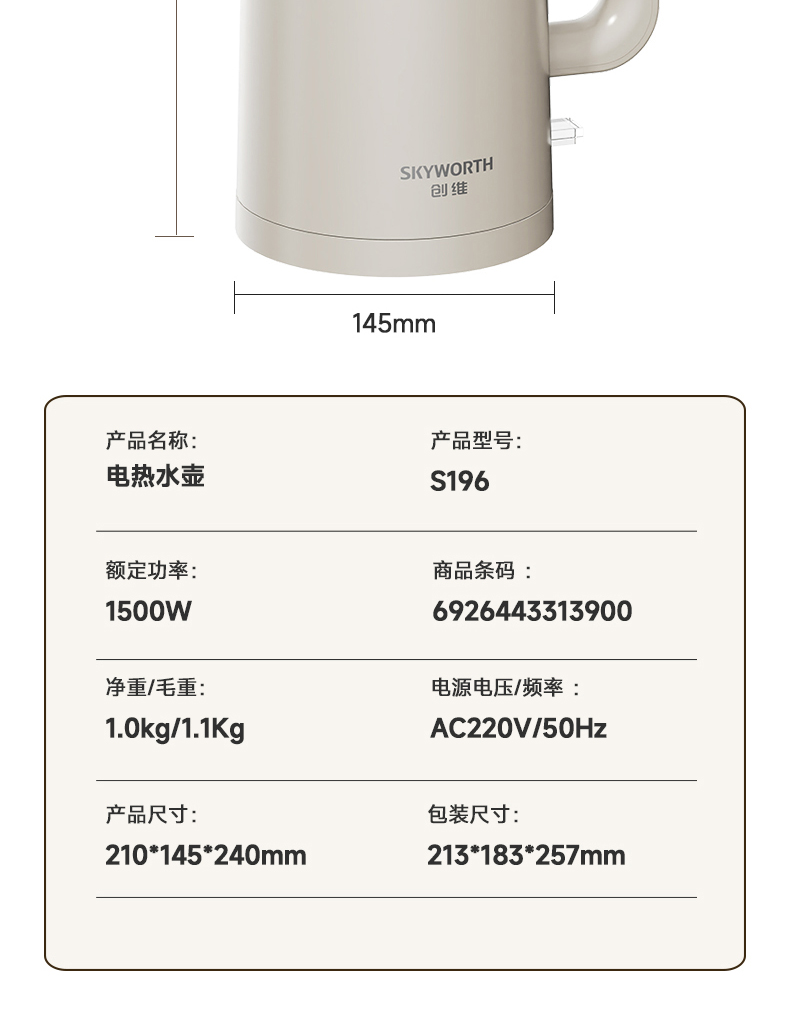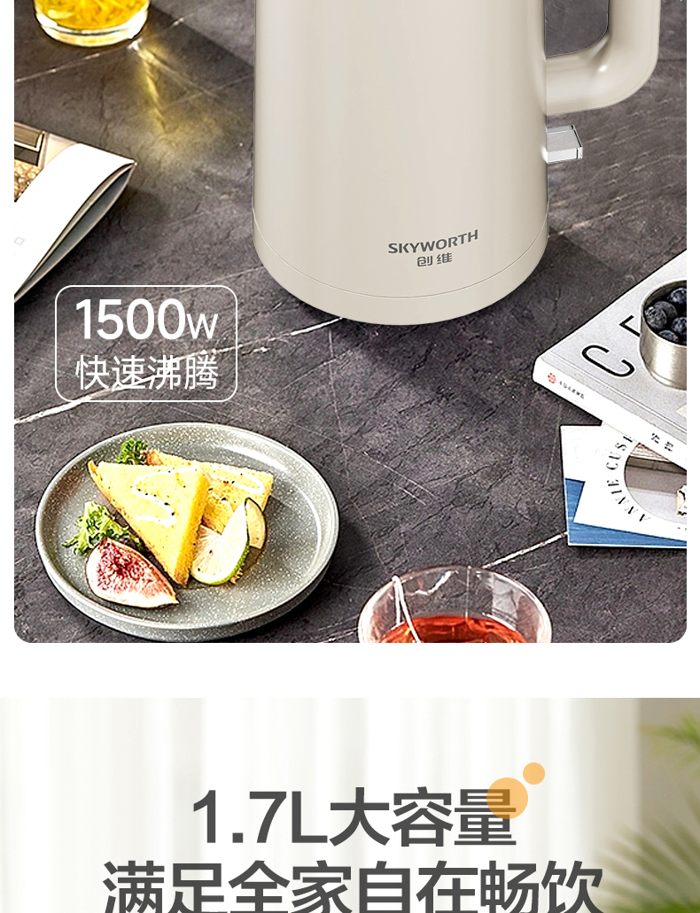 商品名称:SKYWORTH/创维1.7升电热水壶S196