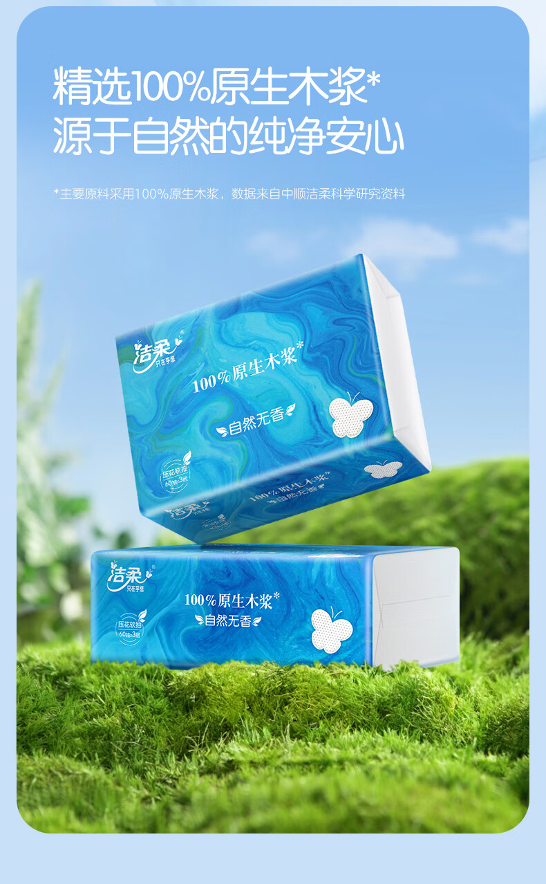 商品名称:C&S/洁柔商用压花软抽纸整箱3层60抽*60包