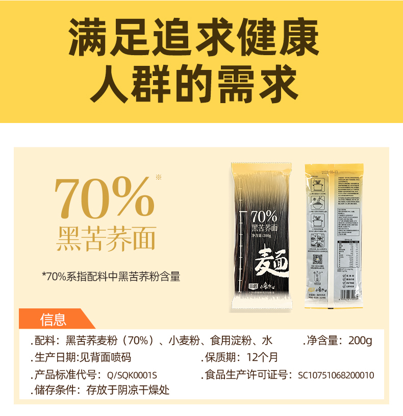 商品名称:三匠小时代70%黑苦荞面200g*3袋