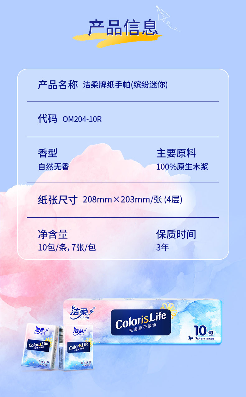 商品名称:C&S/洁柔缤纷无香迷你手帕纸4层7张*10包