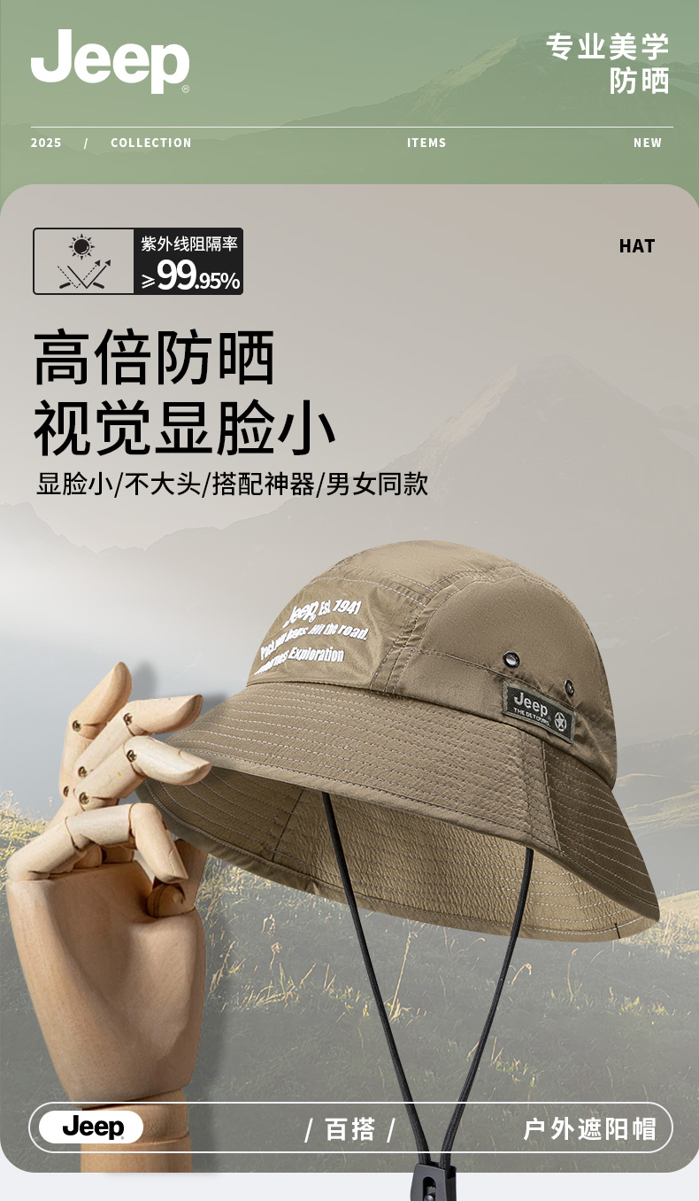 商品名称:Jeep/吉普简约字母遮阳渔夫帽P950NAD769