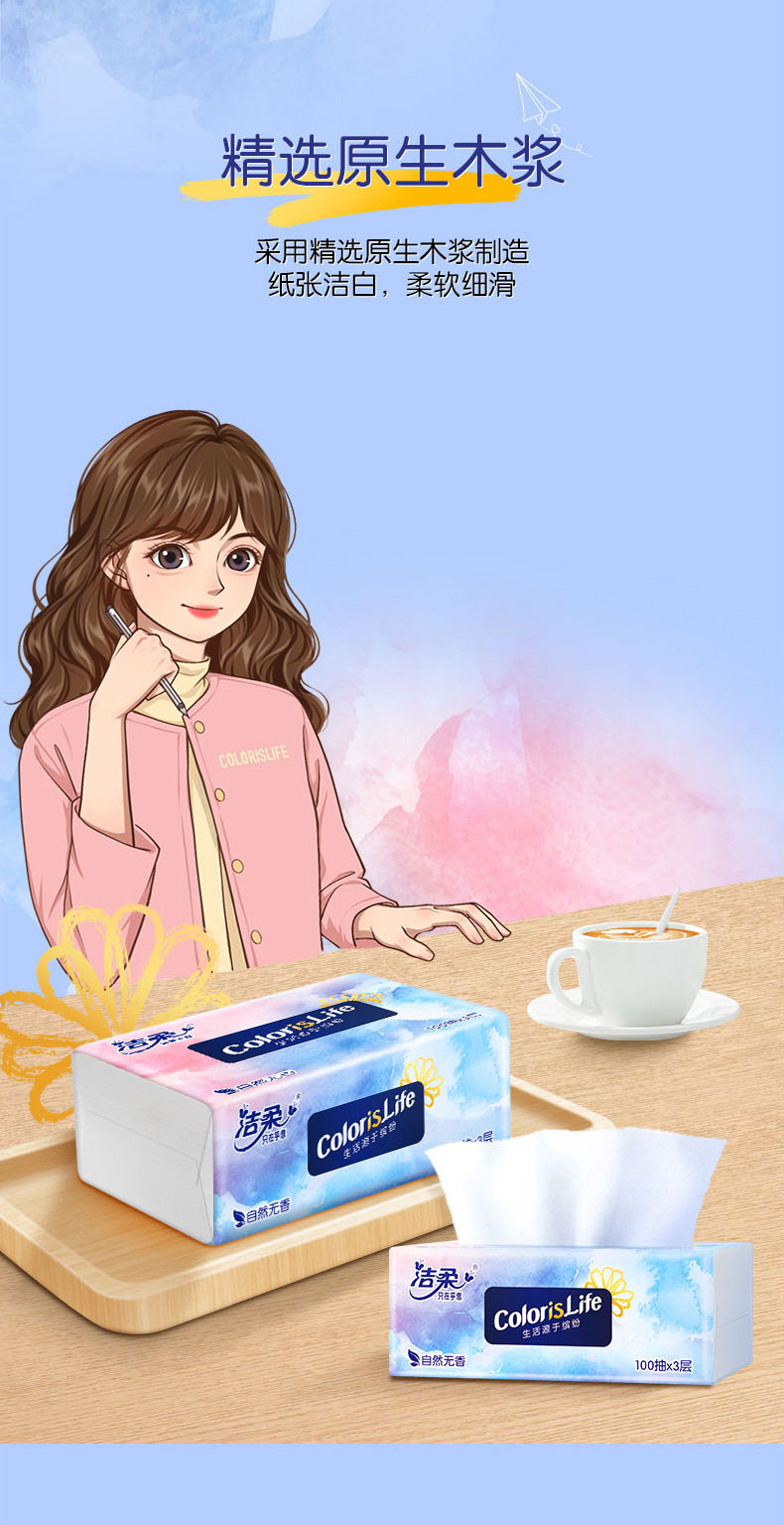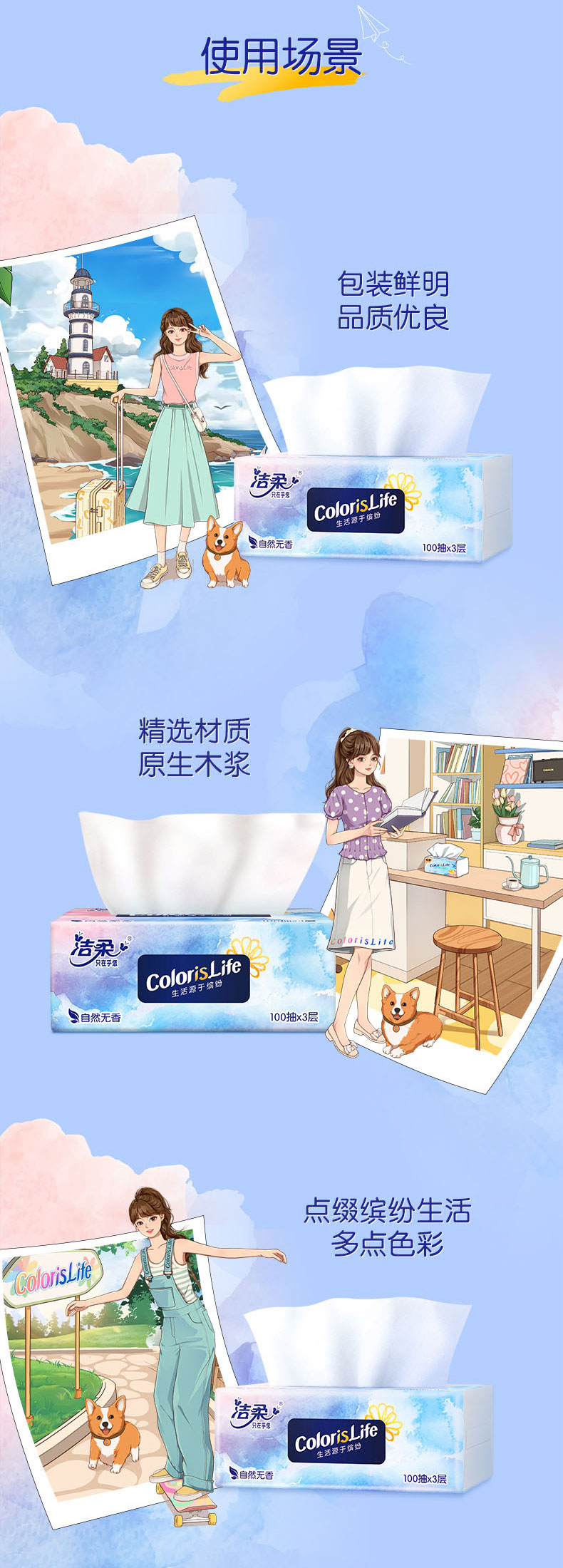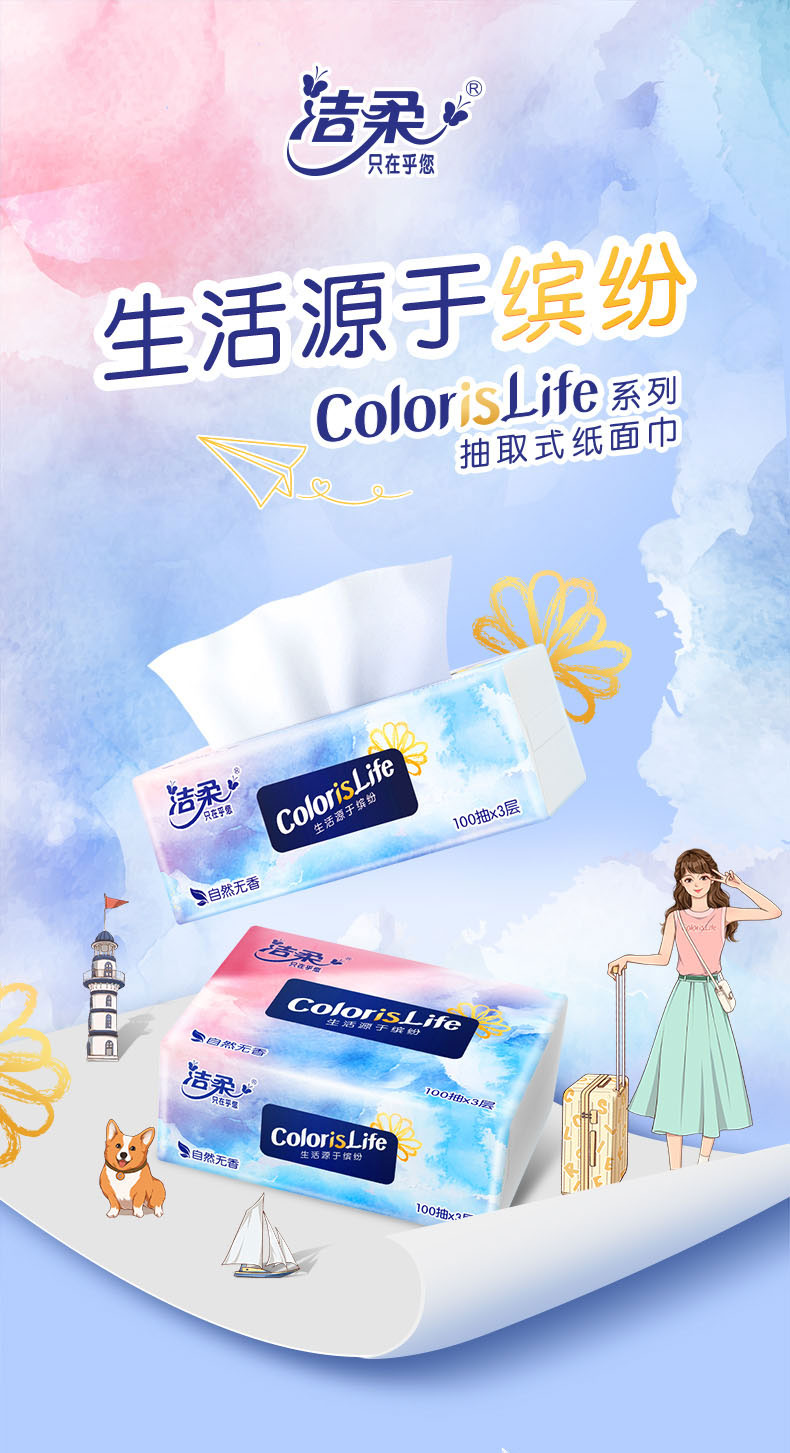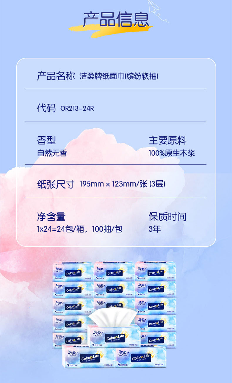 商品名称:C&S/洁柔缤纷软抽纸面巾整箱3层100抽*24包