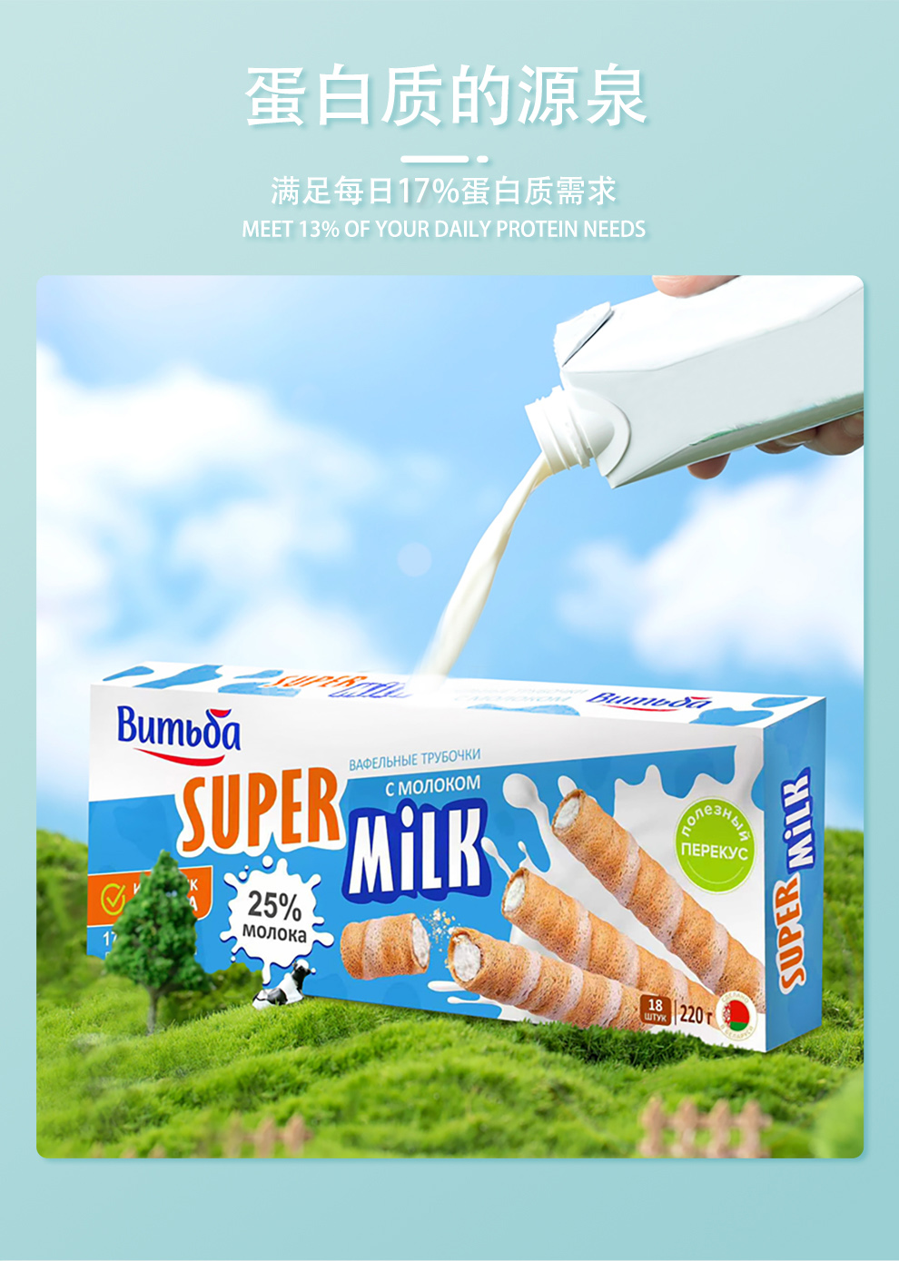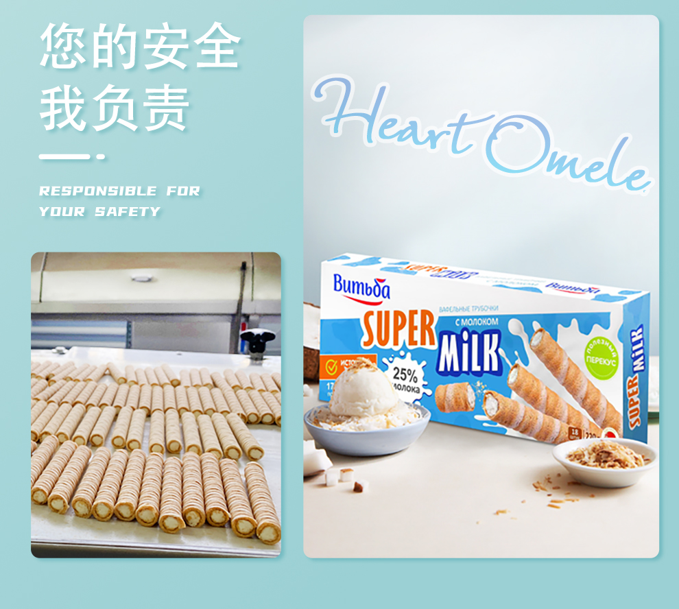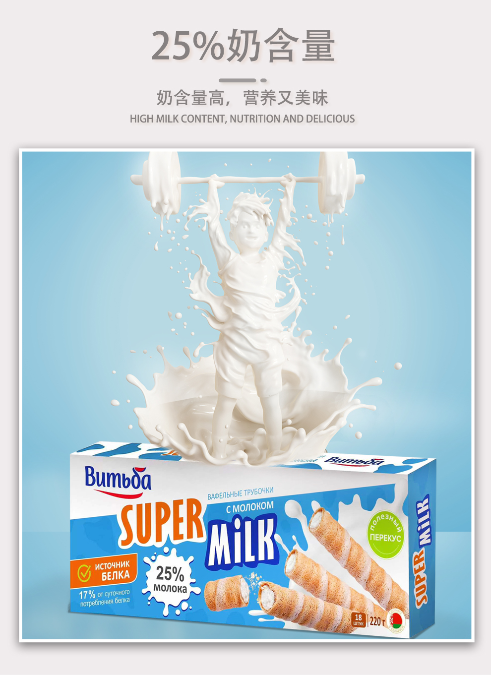 维特巴牌白俄罗斯进口牛奶味注心蛋卷220g*4盒