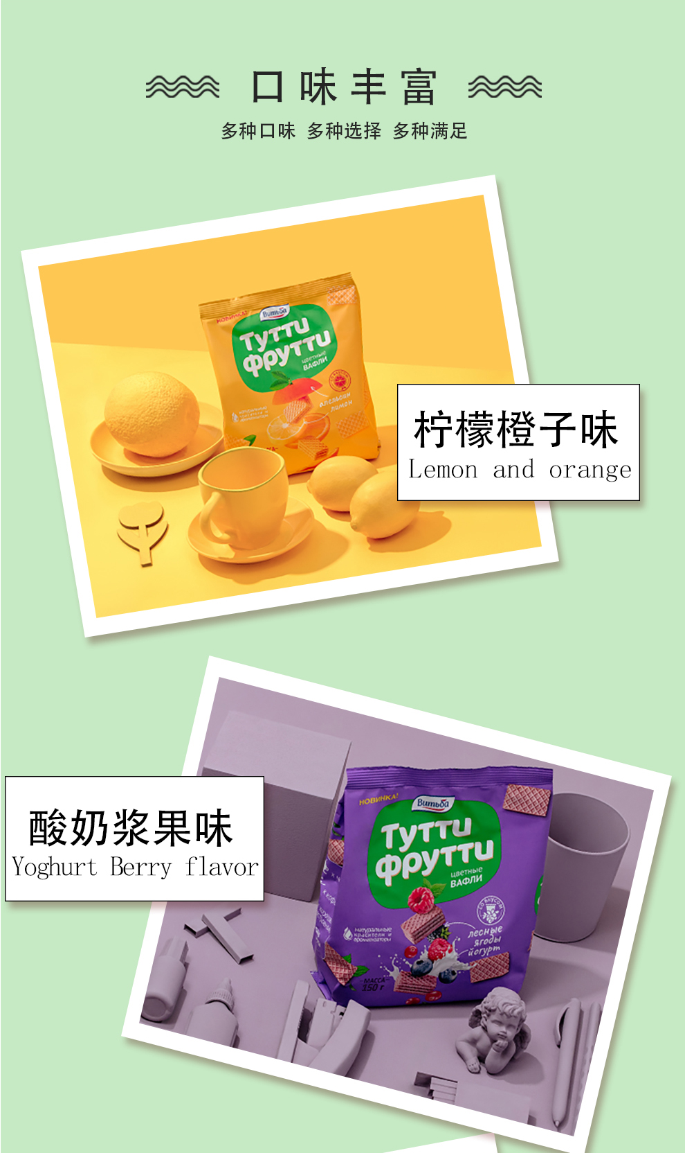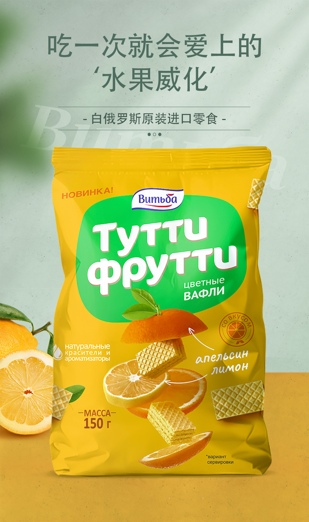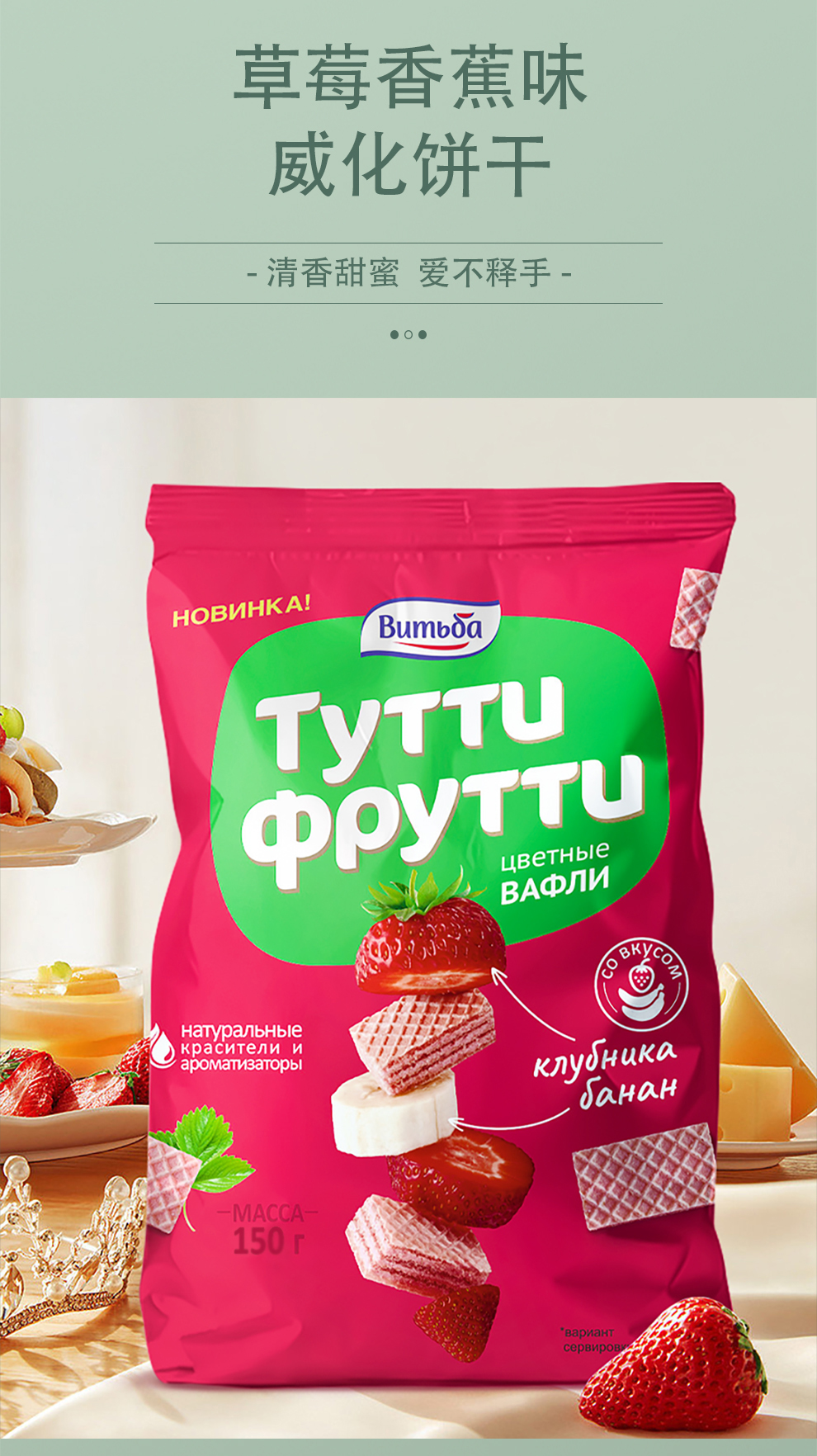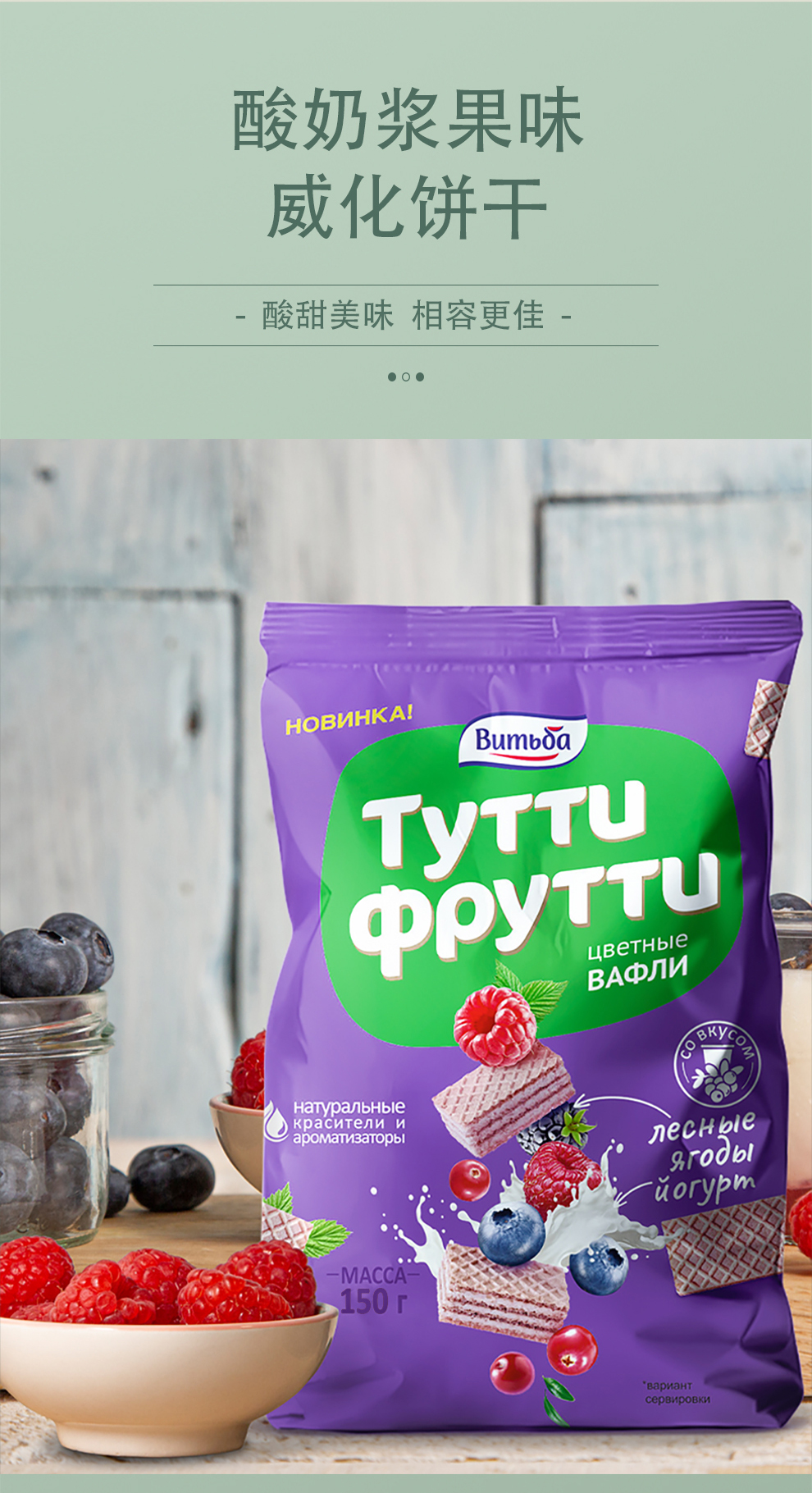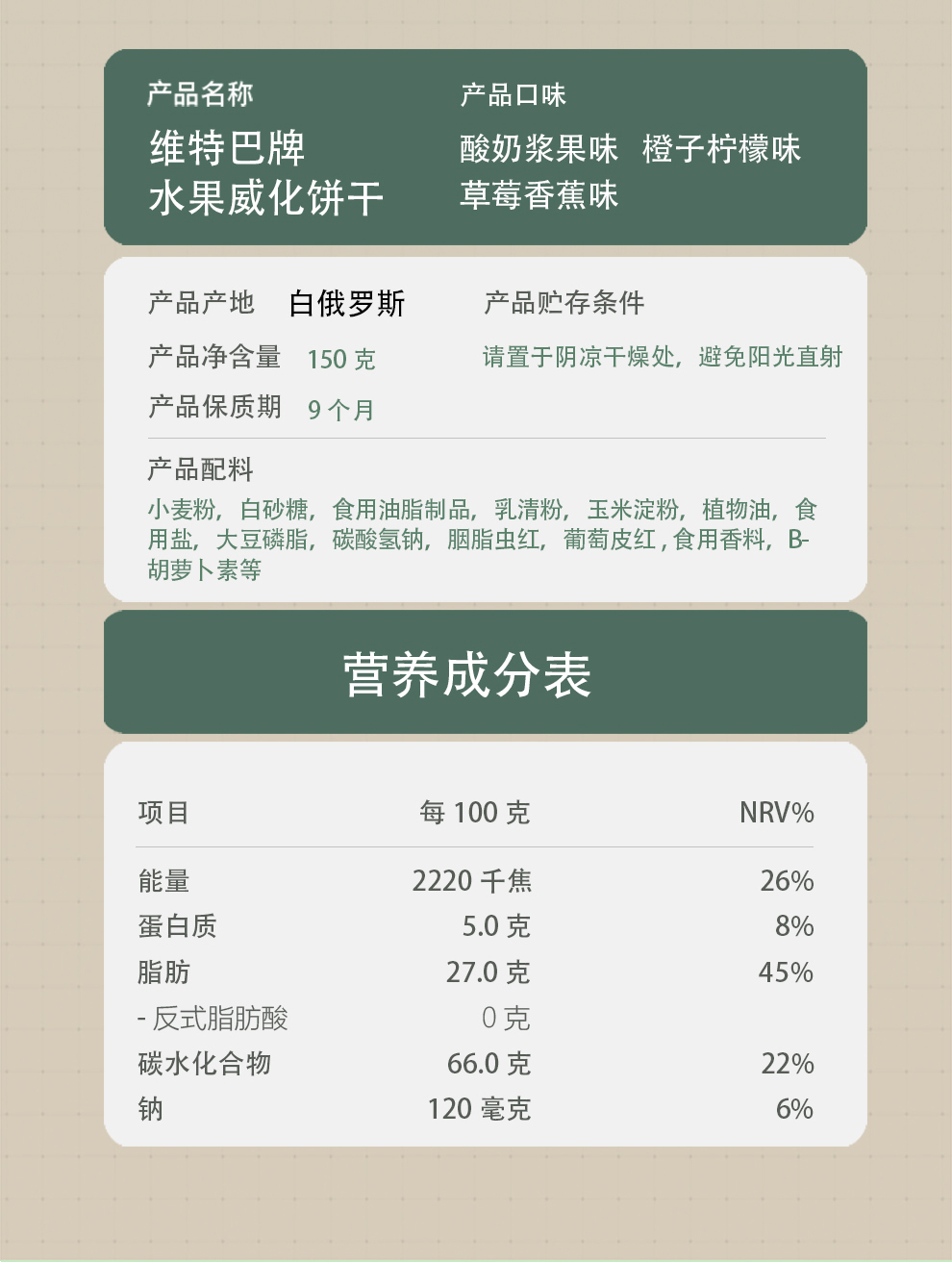 商品名称:维特巴牌白俄罗斯进口水果威化饼干混合口味150g*3袋