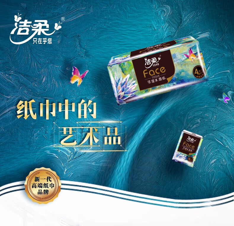 C&S/洁柔Face艺术油画可湿水纸面巾4层100抽*6包*3提