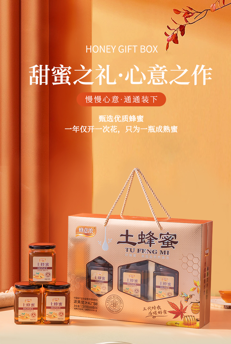 商品名称:蜂意浓土蜂蜜礼盒500g*3罐