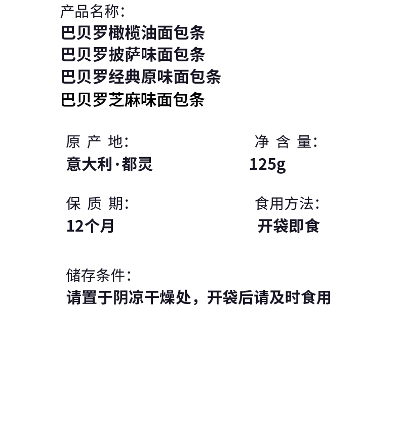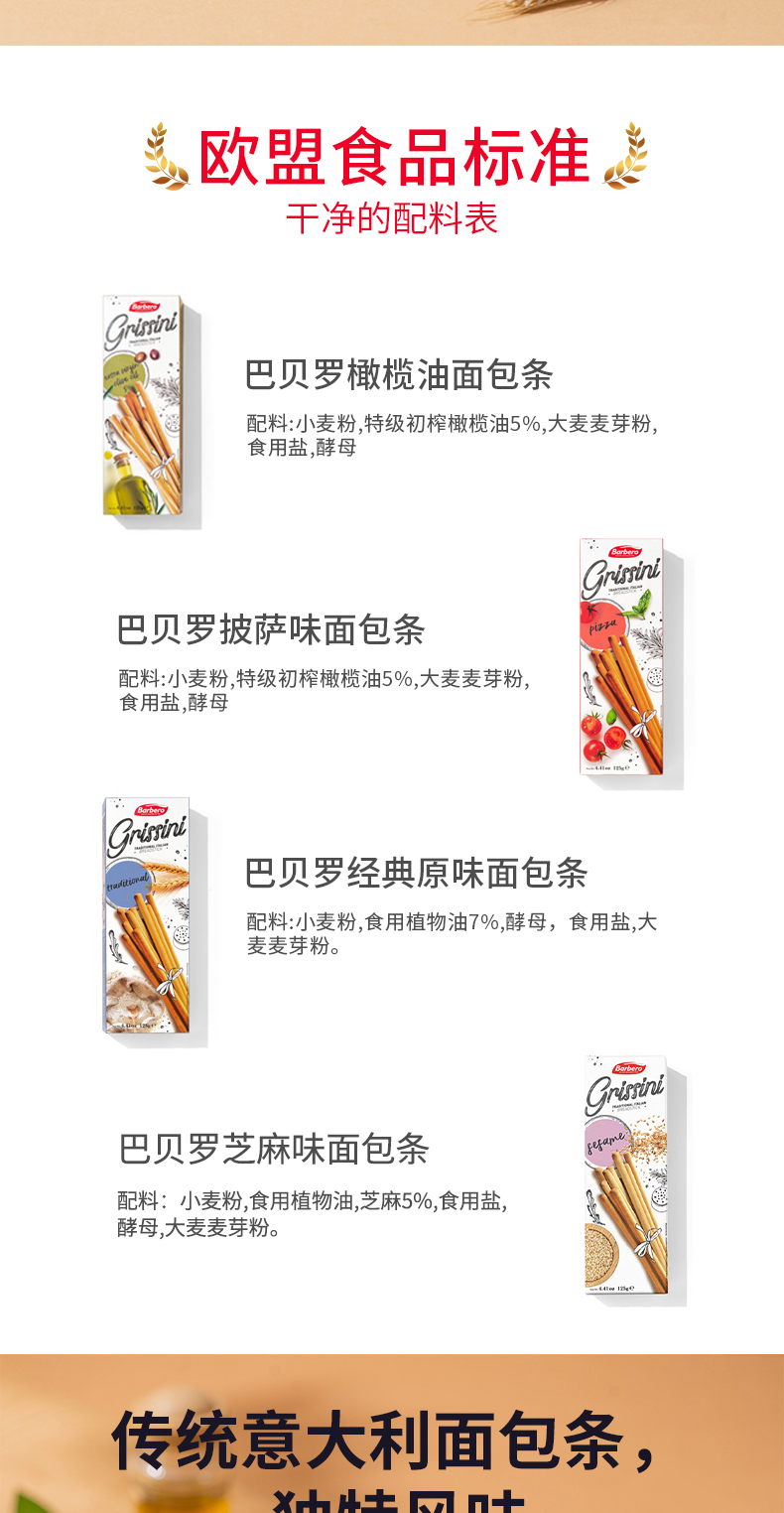 商品名称:Barbero巴贝罗意大利进口面包条混合口味125g*4盒