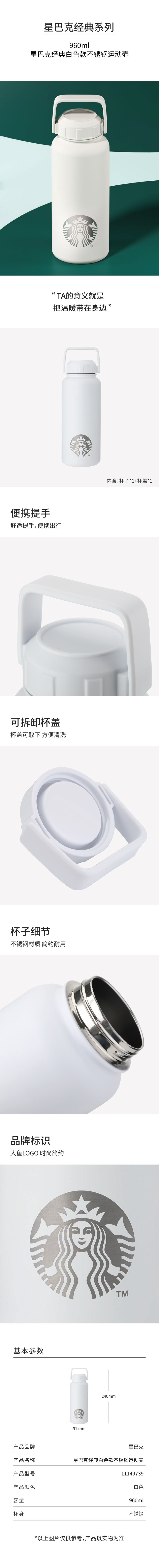 商品名称:STARBUCKS/星巴克960毫升经典白色款不锈钢运动壶11149739