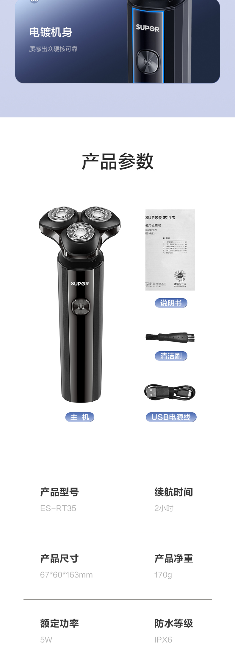 商品名称:SUPOR/苏泊尔剃须刀ES-RT35