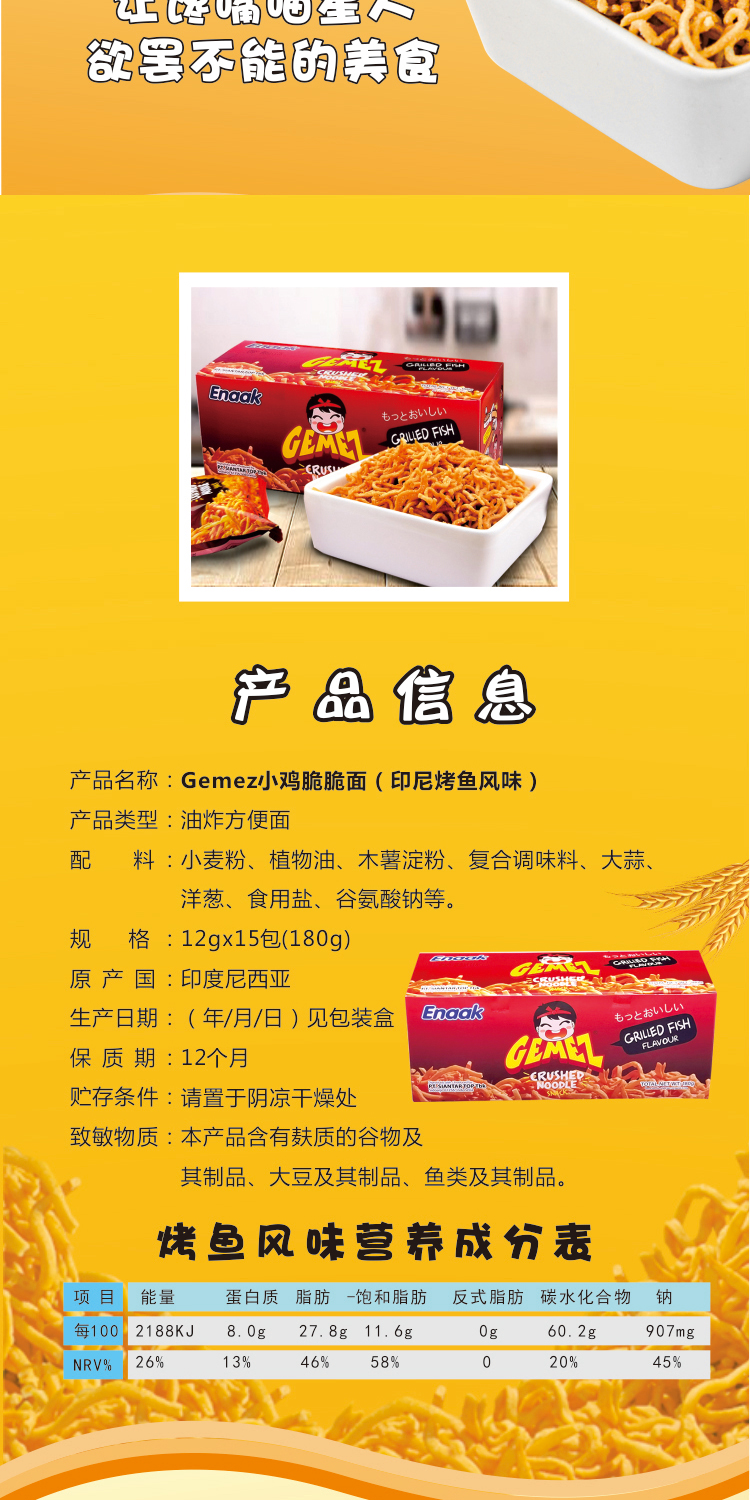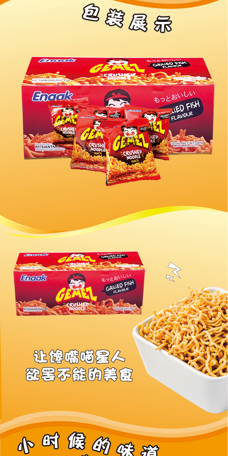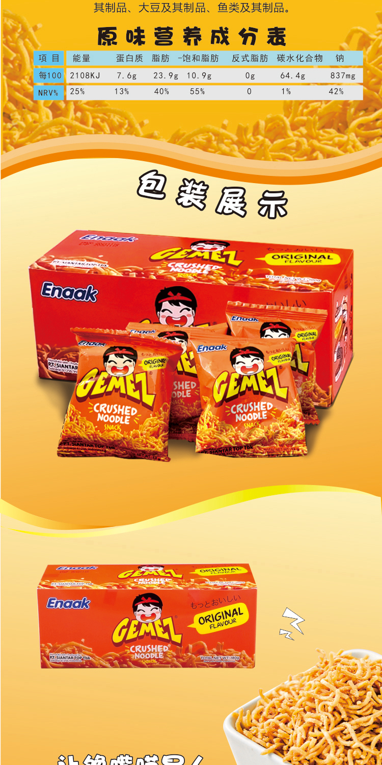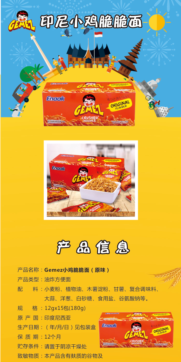 商品名称:GEMEZ印度尼西亚进口小鸡脆脆面混合口味180g*4盒