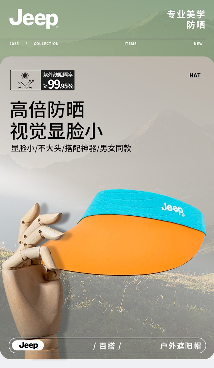 商品名称:Jeep/吉普户外防晒遮阳透气空顶帽P950NAD131