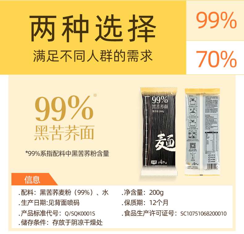 商品名称:三匠小时代99%黑苦荞面200*3袋