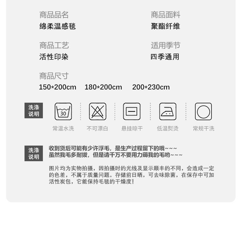 商品名称:YEKEROLAN/约克罗兰简卉绵柔温感毯